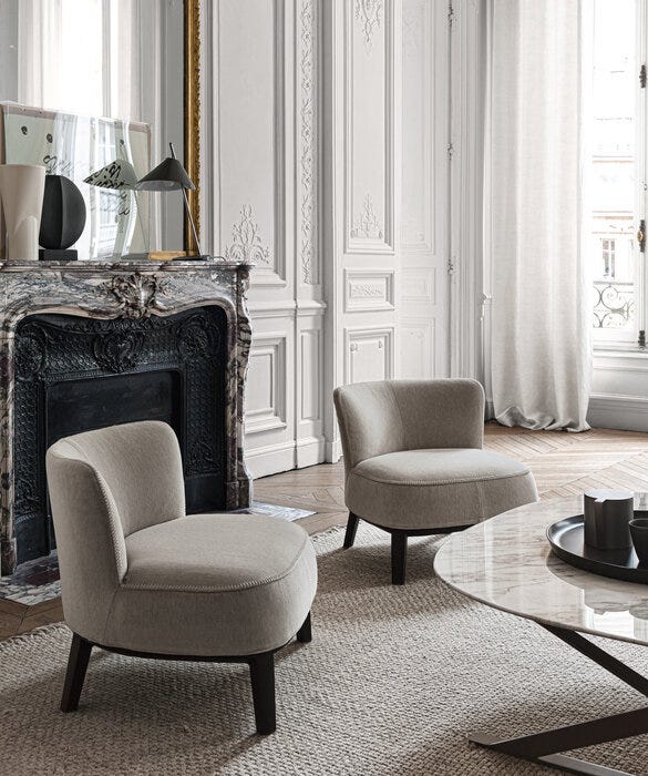 Febo 扶手椅带有对传统座椅类型的记忆。它们以柔和优雅的线条相结合,提供不同类型的或多或少的包围形状、高靠背或低背、带或不带扶手。织物或皮革覆盖物饰有可见的毛毯缝线,并可将脚部融入精致的单一材料版本。基础结构也可以采用不同饰面的实木。Febo 系列还提供沙发、贵妃椅、椅子、床和坐垫凳。