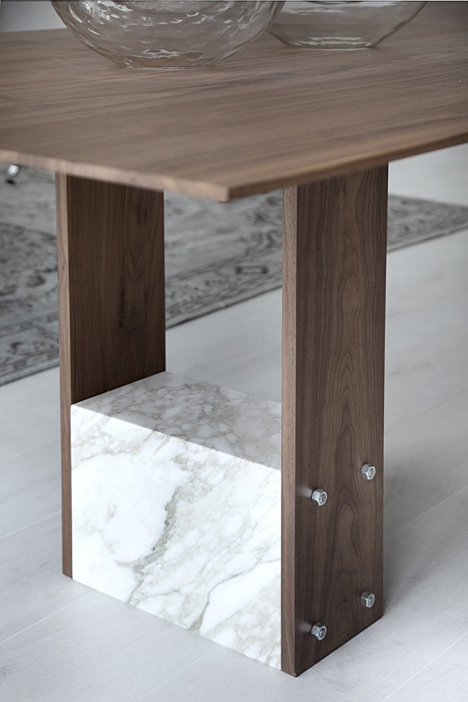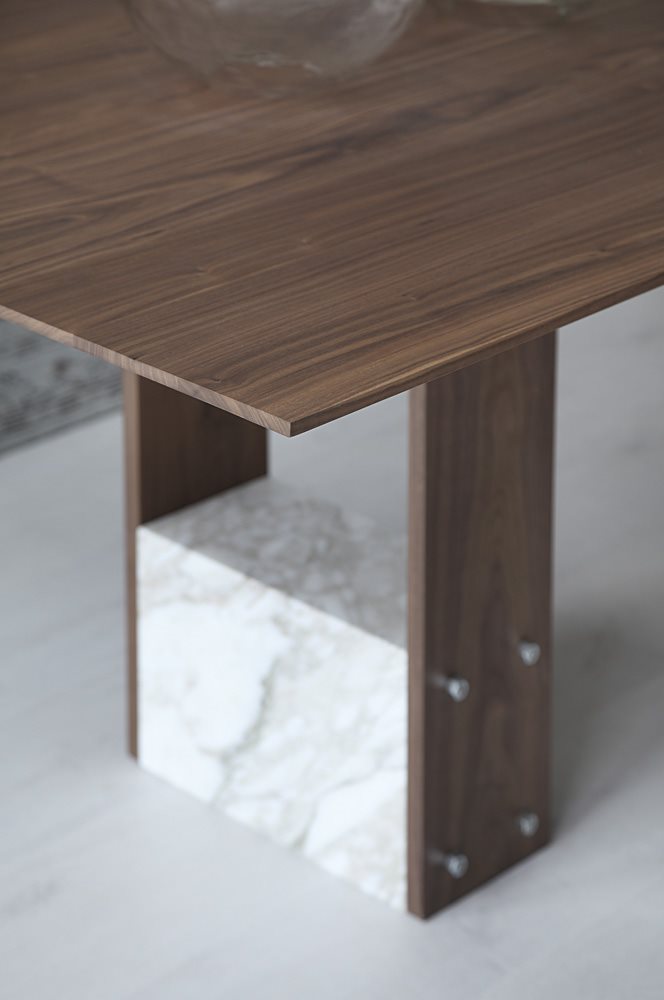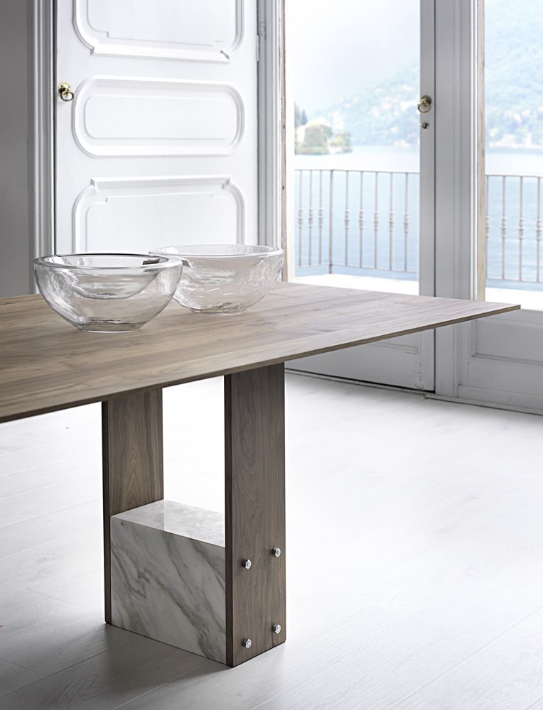 卡内塔核桃的长方形餐桌,有大理石底座。