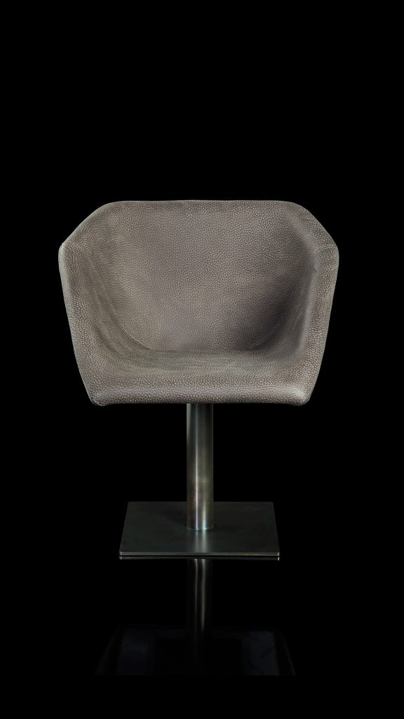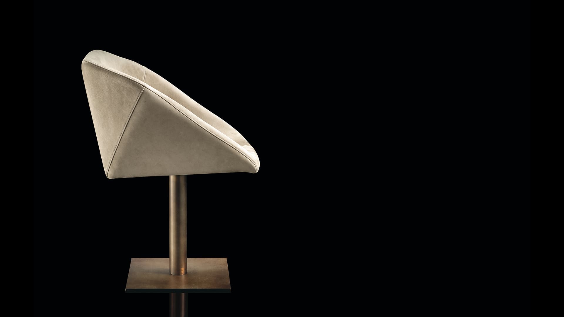 6厘米Ømetal and finish基础下,在钢铁输卵管burnished铜管。Swivel。坐在wooden shell上,用皮革或目录样本中的fabric覆盖着聚氨酯泡沫。难以置信的封面。