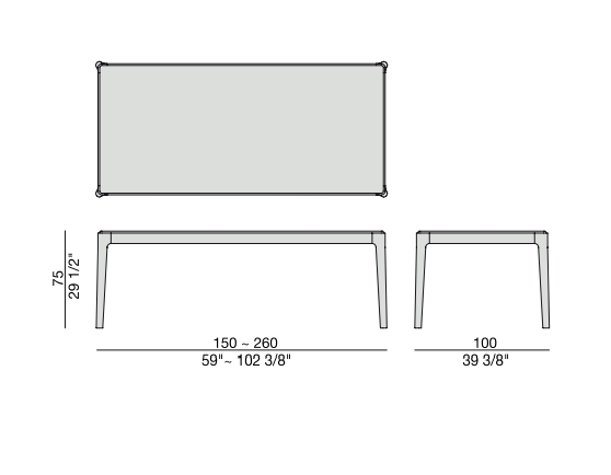 方形餐桌,结构为实心卡纳莱托核桃,顶部为木头、大理石或背漆蚀刻玻璃。