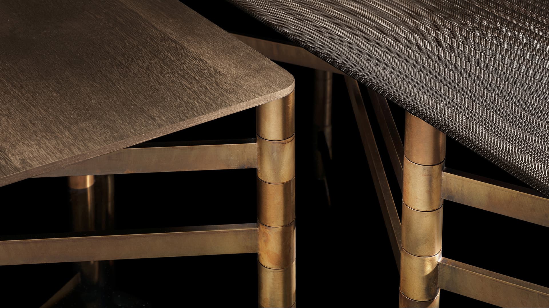 直径4厘米的钢管或黄铜管与矩形钢管或黄铜管缠绕在一起。
