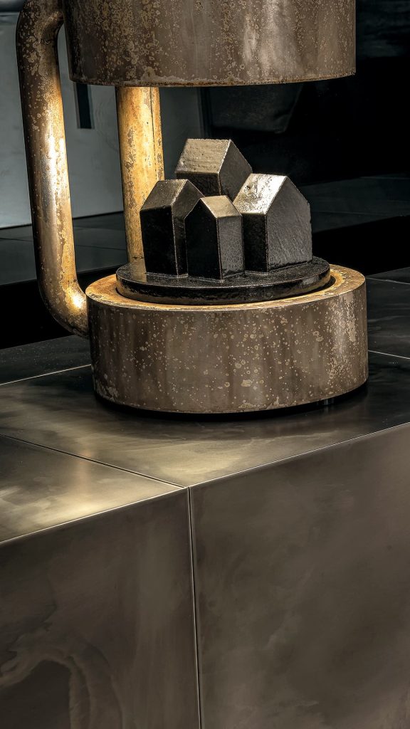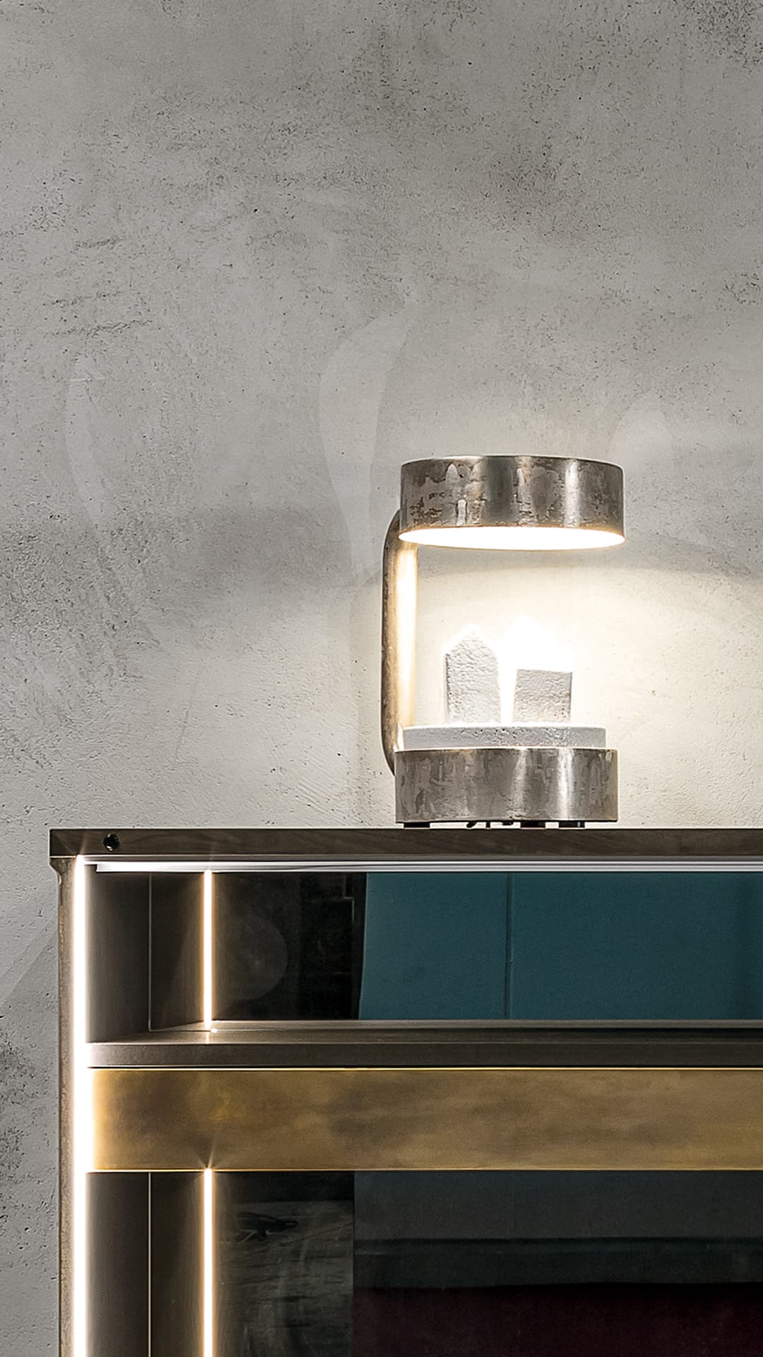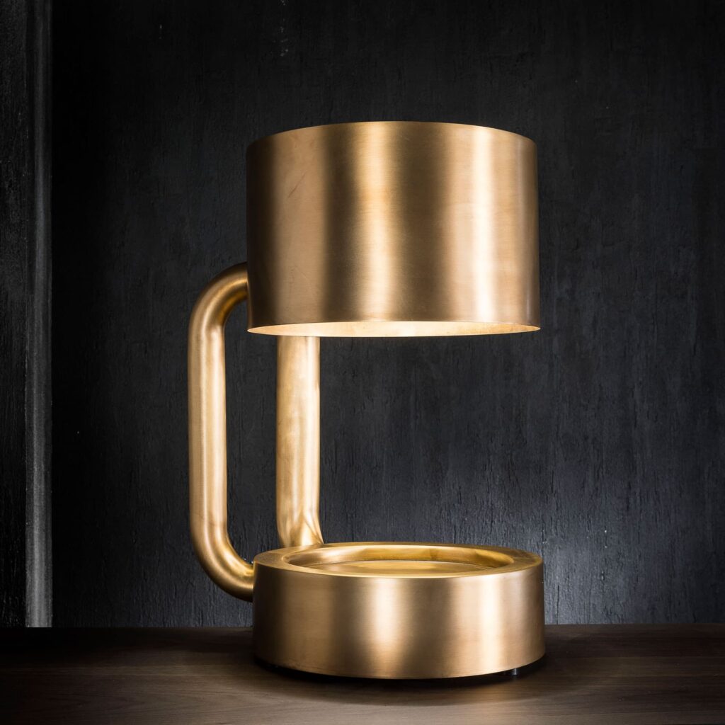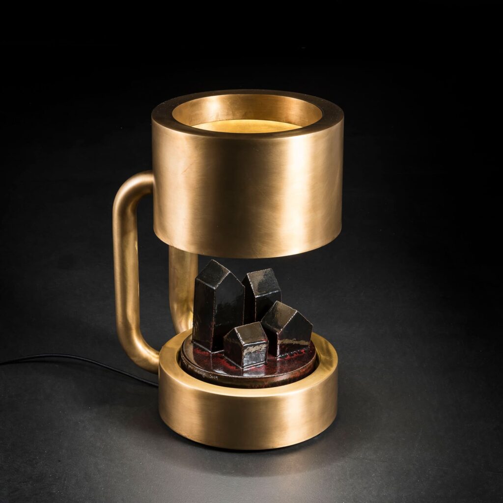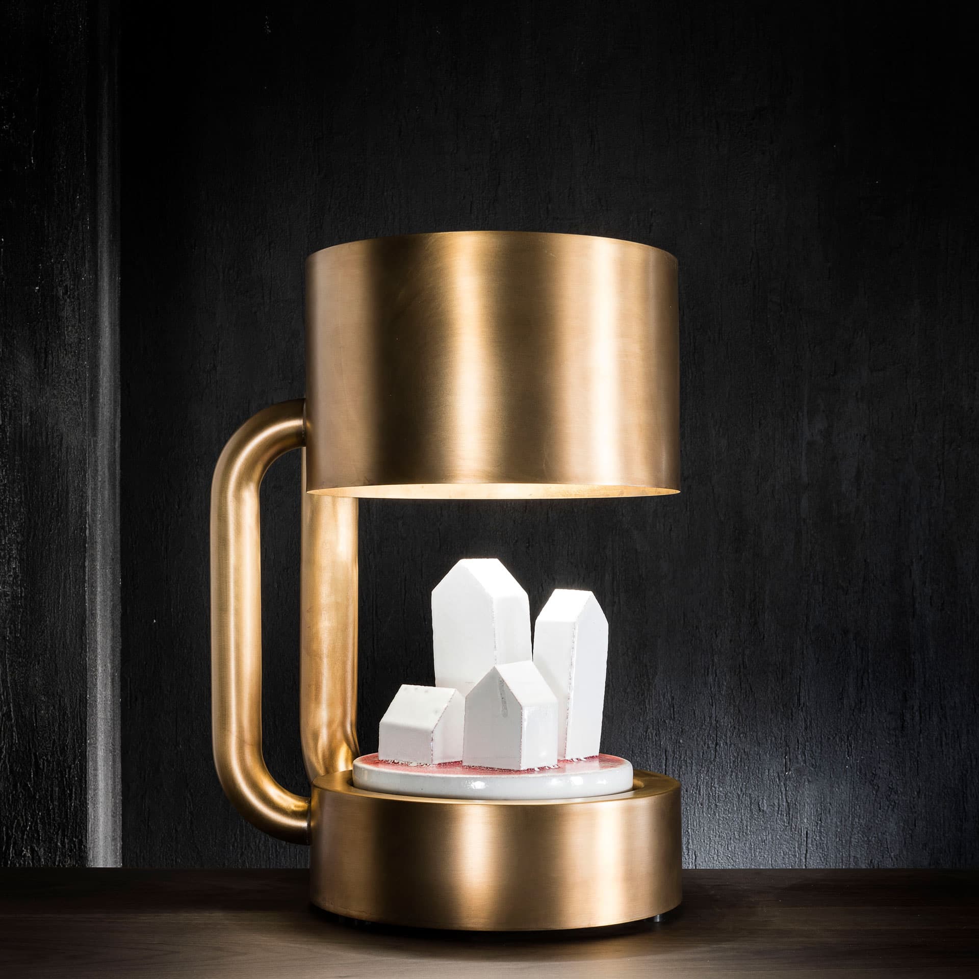 led节能台灯(节能指数A),带暖光。福斯托·萨尔维的中心陶瓷雕塑。在黄铜结构。可提供额外的暖光。仅供室内使用。