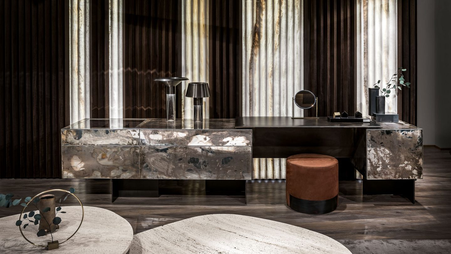 v形切割金属表面抛光黄铜手工使用传统技术,H-Silver®和Shine Copper。