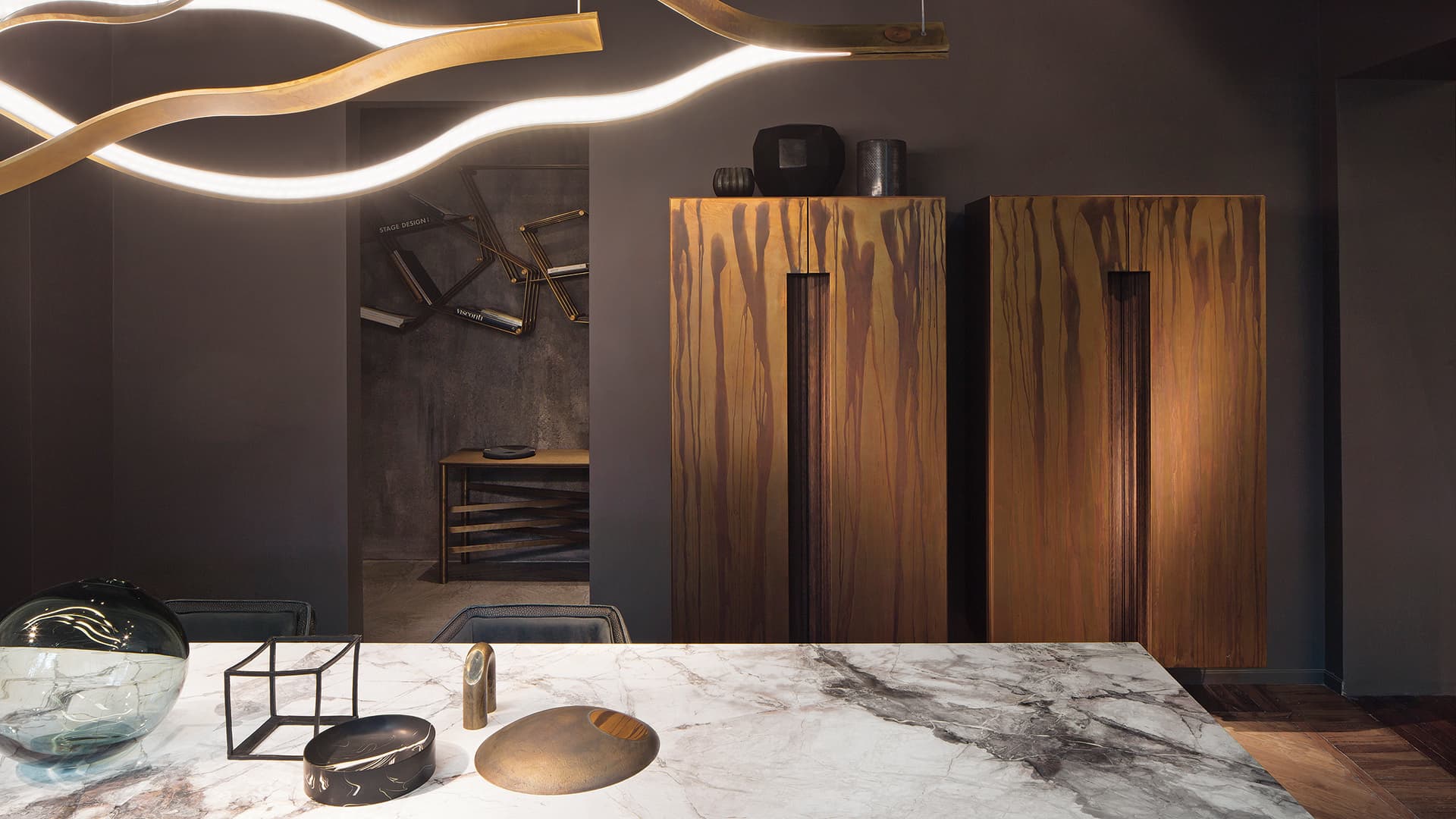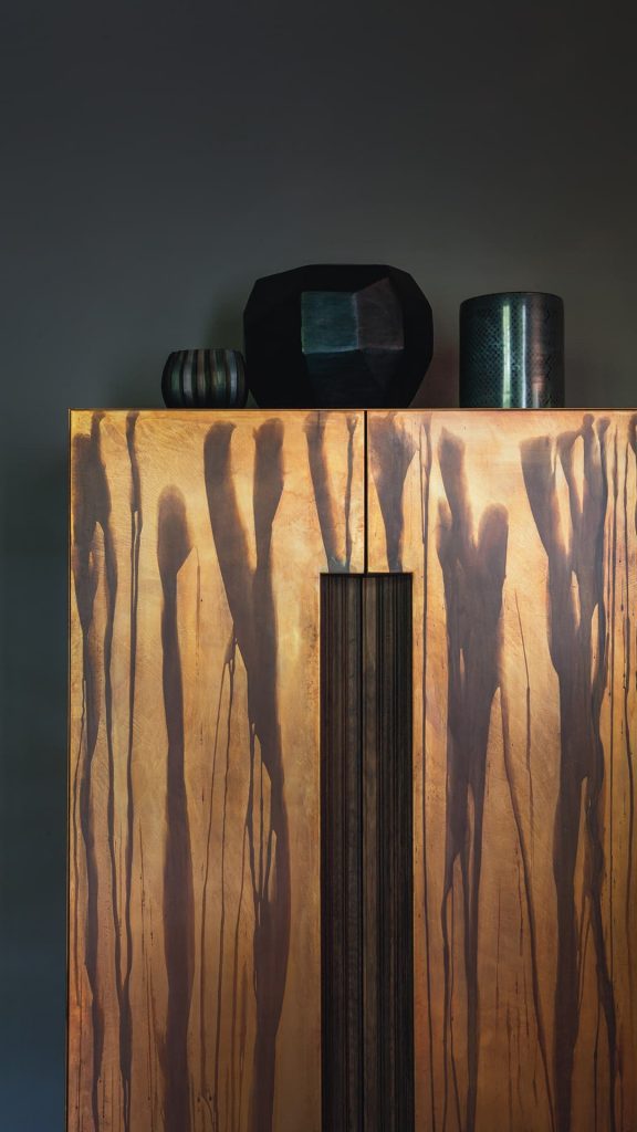 热处理木材作为我们的样品或沼泽木材,基于天然蜡和水的油处理。1厘米厚的古铜色钢化玻璃货架。