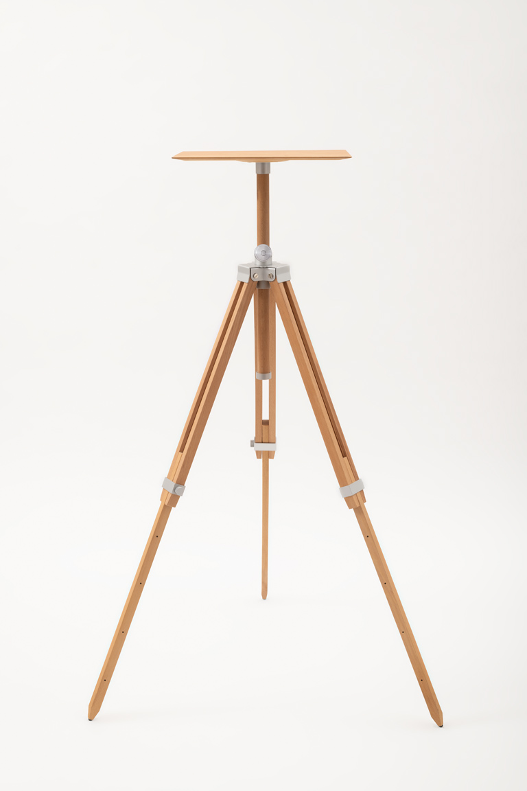 灵感来自艺术家三脚架的木结构支撑着一个顶部,可以是矩形的或圆形的,或者外衣架的主体有六个钩子和一个伞架。提供实用性和使用自由性的五种不同高度:笔记本电脑休息、底座或服务台。