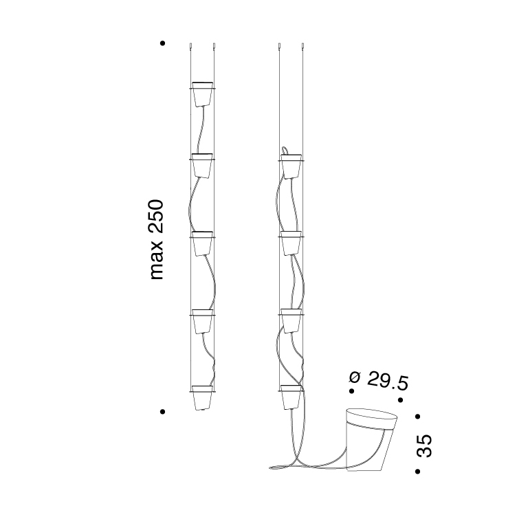 窗花园吊坠是一种智能灌溉系统,并融入高压铸瓷花瓶中。花瓶本身设计用于水培栽培,每个花瓶的周长周围都有一个小凹痕,钢丝将其固定在结构上。