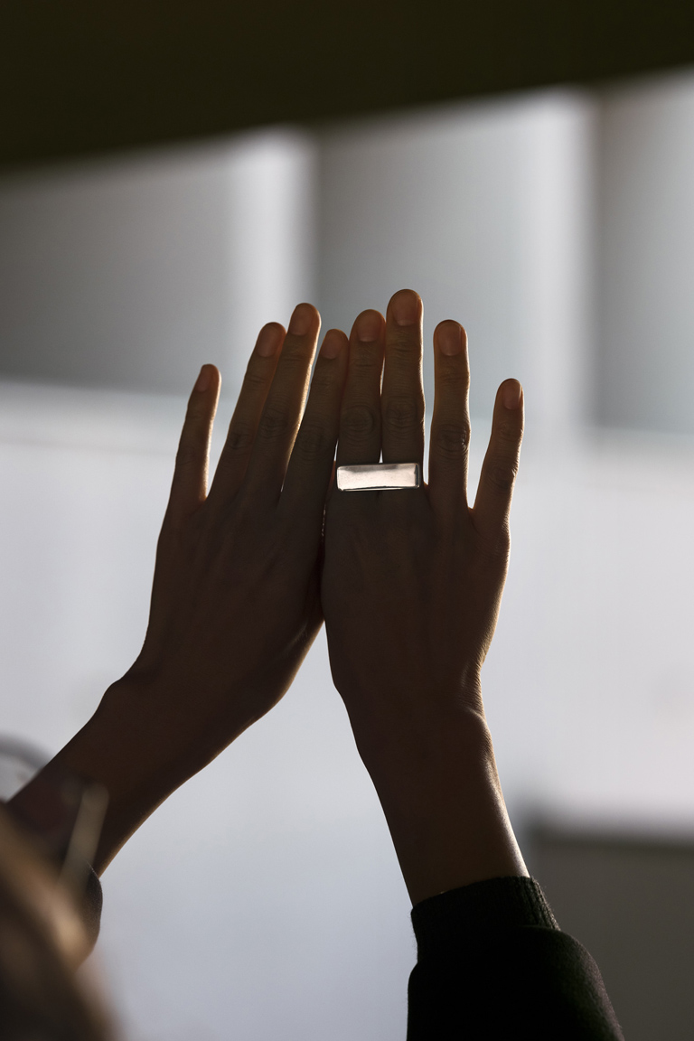 陶是一颗手指上的宝石。Tau 位于手指之间,很容易取出,完全重新设计了手指与装饰手指的配件之间的关系。它只有四种尺寸(S、M、L、XL),有两种形状(纤薄/大胆)和四种材料:抛光银、缎黄铜、钢和钛。