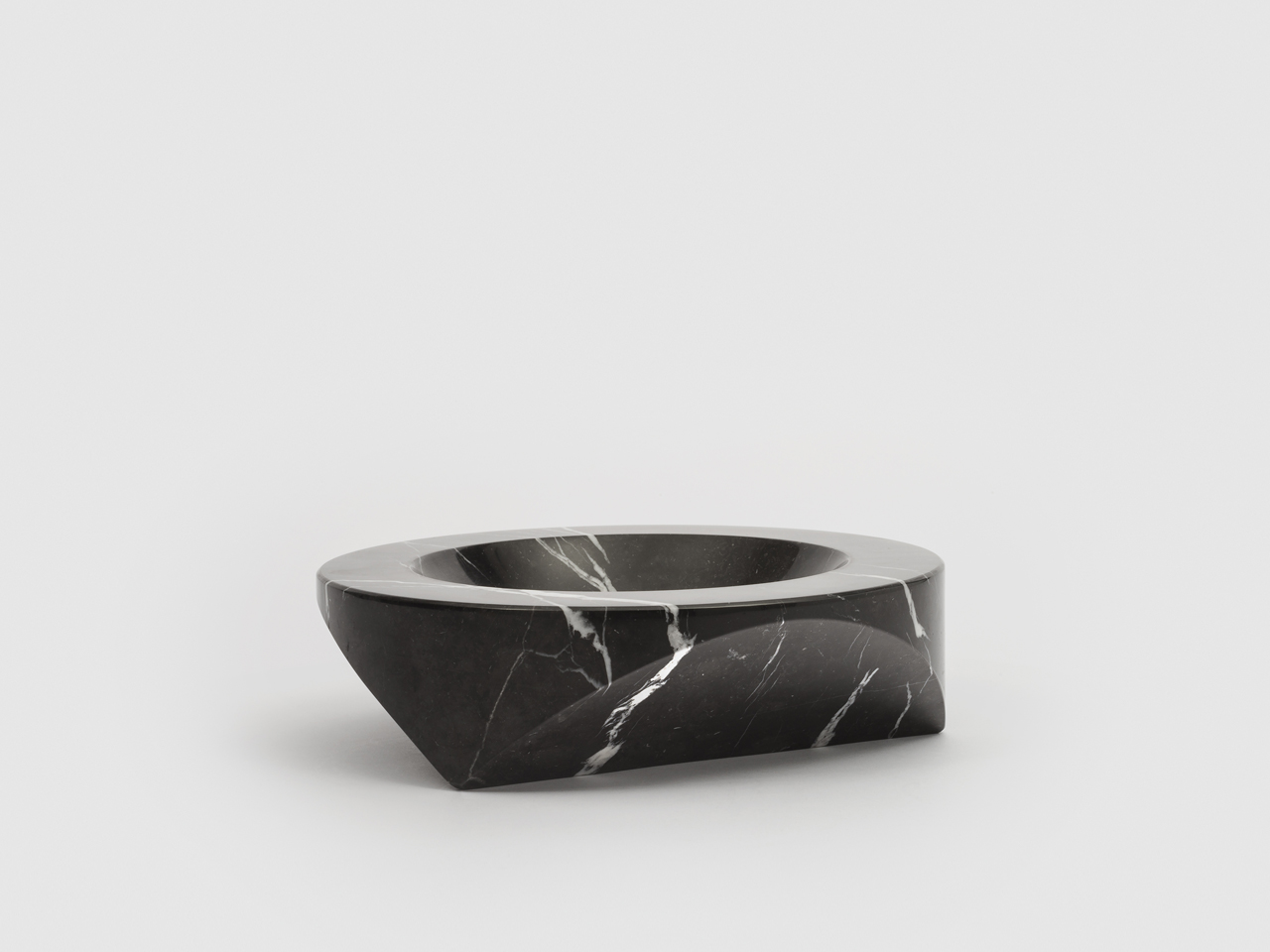 帕罗斯 D1 是烟灰缸,也可用作桌子中心。它由一块简单的半成品黑色马奎纳大理石制成,限量版每年生产100件。