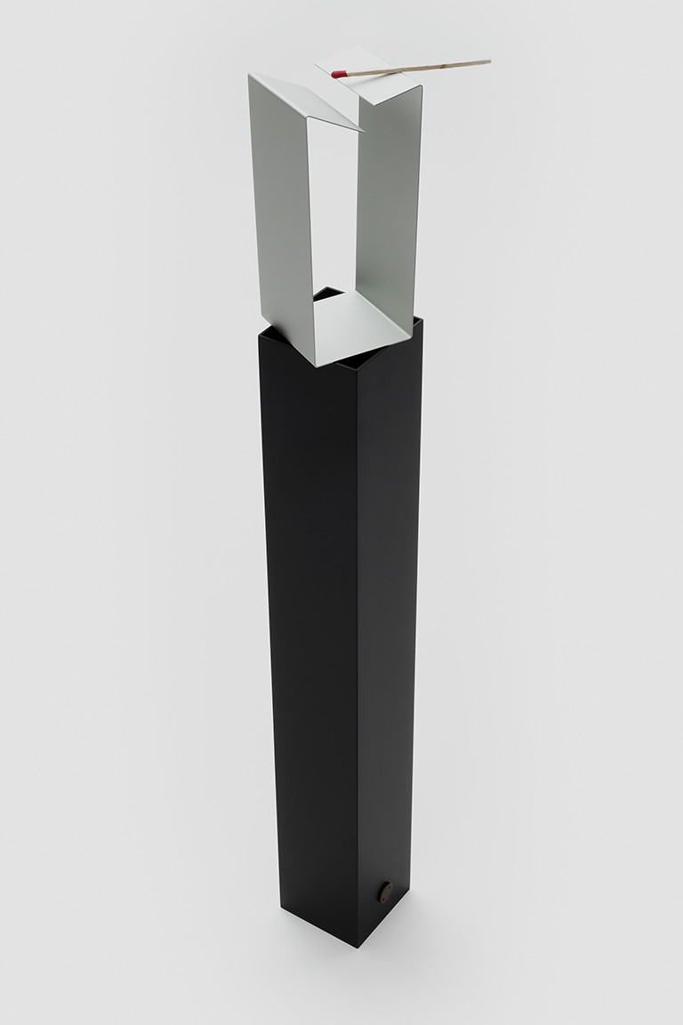 蓬扎是一个站立的地板烟灰缸。弯曲的铝板插入方形金属管中,可拆卸,以便将内含物排空。