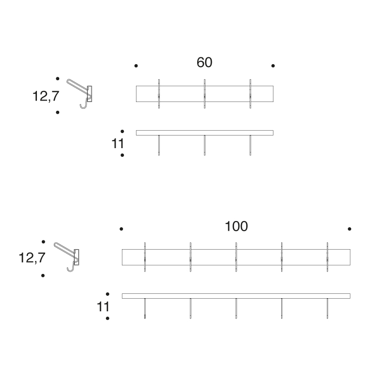 形状的钢丝画出两个钩子,并扣在杆或墙支撑上,以创建衣架系统。地板版本有三个支持在不同的高度,而墙壁版本有3或5个元素与相同的双钩几何形状,但在较小的规模。这两个版本都提供无烟煤灰色或银色,再次与铬钢丝钩。 "Tiki 是一个衣架系列,在这种衣架中,简单的半成品的加工会产生复杂的形状,遵循公理"整体大于零件之和"。