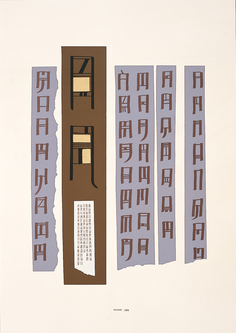 斯克里图拉·伊莱吉比勒·比安科是一种四色丝网印刷品,是"爱迪齐奥尼·达特"系列(艺术版)的一部分。这个概念是基于用图形的眼睛观察文字的想法,即使不能读懂单词的含义,也能欣赏到由标记构成的美的元素。