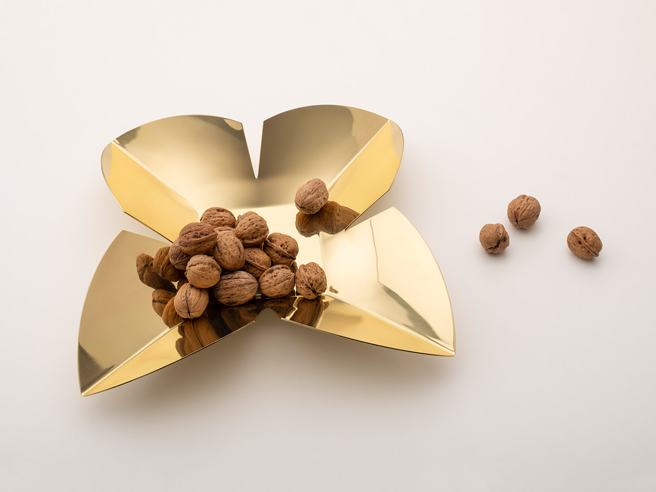 抛光黄铜的中心件,灵感来自阿比塔齐奥内每拉佩斯在斯堪扎诺乔尼科,马特拉,一个项目捐赠给丰达齐奥内西特拉佩斯每伊班比尼,由诺贝尔和平奖得主贝蒂威廉姆斯在巴西利卡塔建立。Apax 中心件由单张折叠的折纸技术创建,以创建蝴蝶的形状。