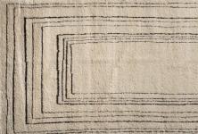 这块地毯完全手工编织在传统的垂直织机上,采用手工纺制的羊毛,具有 900 年初柏柏尔-摩洛哥地毯的特点。整理过程非常精细:在第一次刮胡子和洗手之后,每块地毯都经过处理,以创造出独特的产品:一个熟练的工匠用剪刀在表面上工作,以便给它原始地毯的典型不规则之处。一边是缝制的,与设计图案相匹配,并装饰有羊毛缝合。在另一边,边缘是一个接一个地编织,按照老柏柏尔地毯的风格。b/w 版本通过使用非染色羊毛进行,而其他版本则涉及使用植物染料。