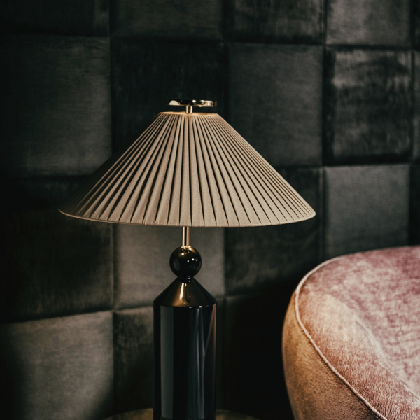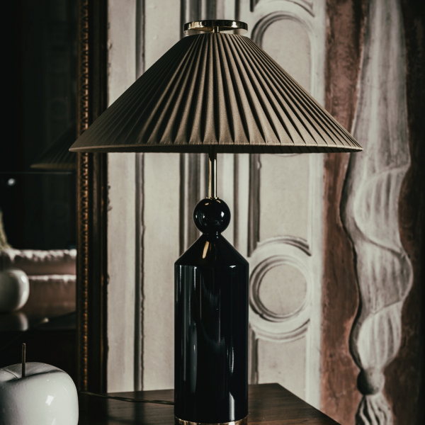 Nadine 是精致的台灯,带有漫射向下的光。她的造型是经典的,但带有一点创意。它的底座是有光泽的午夜蓝色漆木。所有这些都赋予它优雅的气息,带有典型的黑色风格。金属元素和金色饰面代表着一种被遗忘的奢华,充满优雅和对细节的关注。
