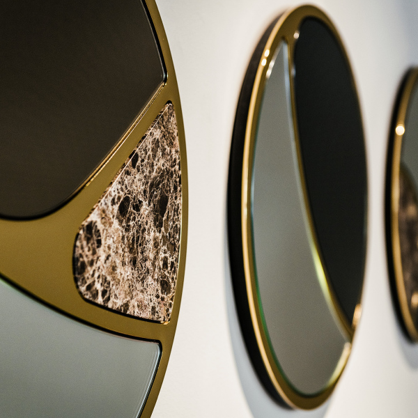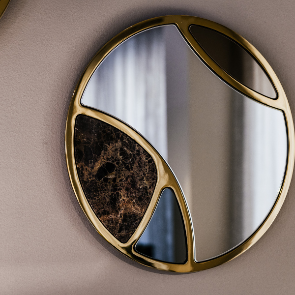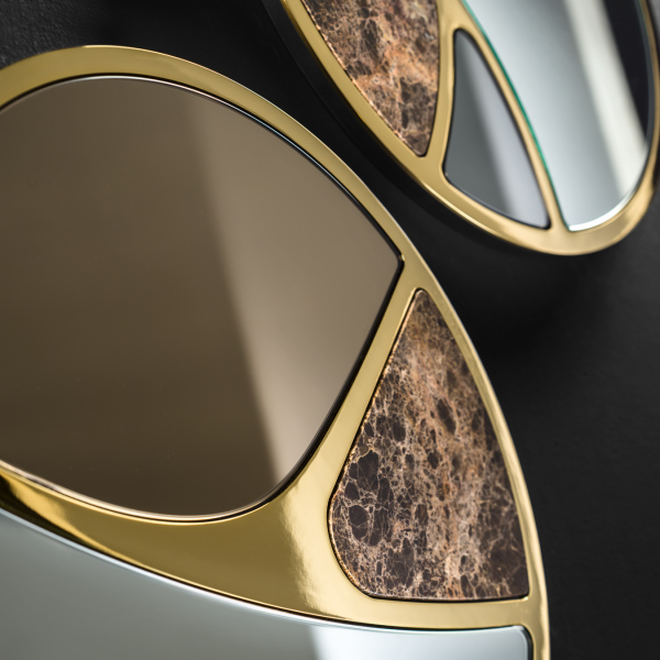 一件精致的家具,令人惊叹的是 Emperador 大理石的轻盈与镜子的精致相伴:Delta 是形状、线条和设计的舞蹈。这是一首并不明显的青铜交响曲,烟熏,闪亮的金色色调,手工巧妙地凿刻。将简单的墙壁转变为具有独特和尊贵个性的风格元素。