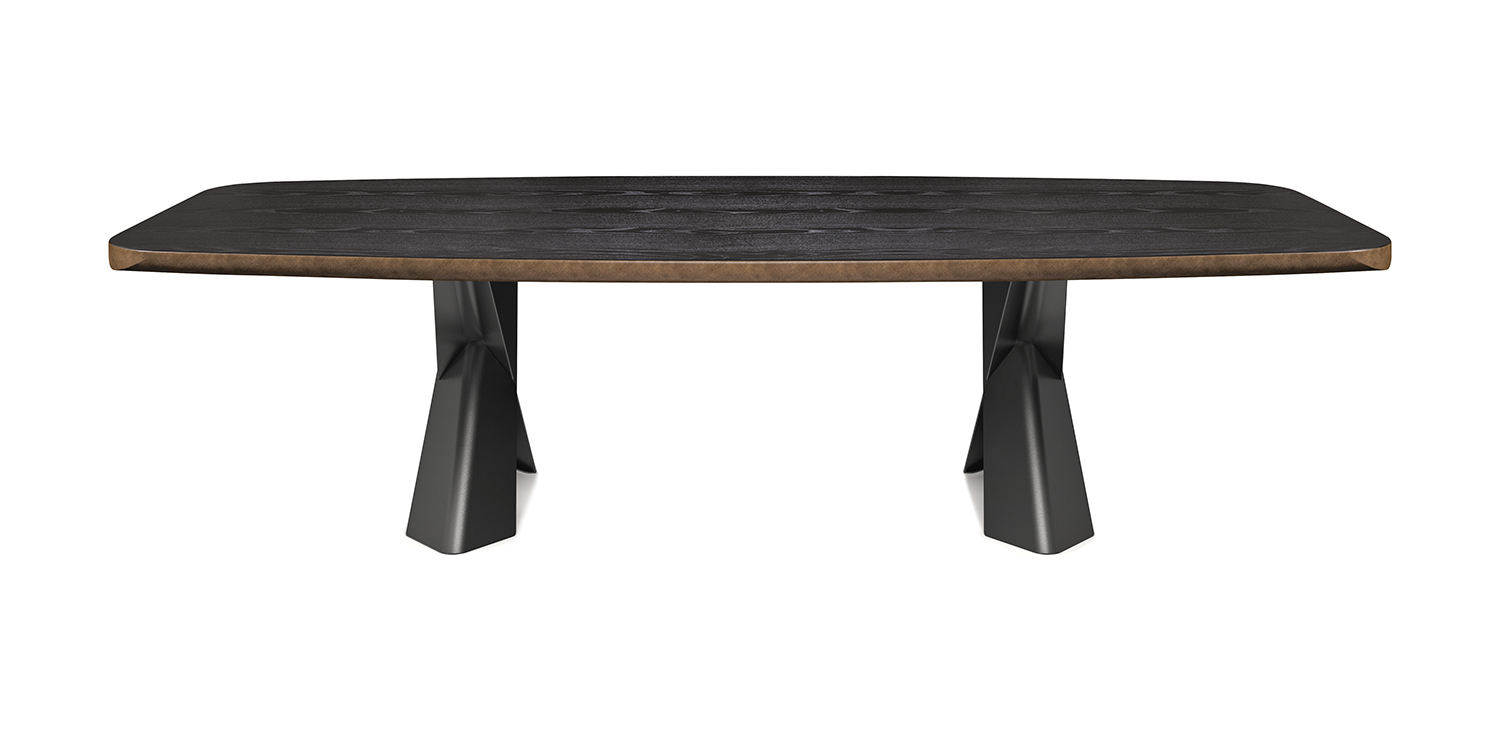 桌子采用钛 (GFM11)、青铜 (GFM18)、石墨 (GFM69) 或黑色 (GFM73) 压纹漆钢、拉丝青铜或拉丝灰色漆钢底座。版本“A”:带有斜角边缘的卡纳莱托胡桃木 (NC)、传统橡木 (HR)、烧制橡木 (RB) 或天然橡木 (RN)。版本“B”:桶顶带有斜角边缘,采用卡纳莱托胡桃木 (NC) 或烧橡木 (RB)。版本“C”:卡纳莱托胡桃木 (NC) 顶部,带拉丝灰色漆面和圆形下轮廓或榆木开孔哑光黑色 (OLM73),带拉丝青铜漆和圆形下轮廓。“S”版:顶部带有卡纳莱托胡桃木 (NC)、烧制橡木 (RB) 或天然橡木 (RN) 的不规则实木边缘。“Masterwood”版本:船形台面采用卡纳莱托胡桃木 (NC) 或烧橡木 (RB) 制成,由不同尺寸的斜木板制成。
