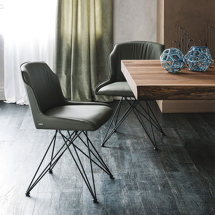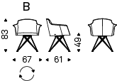 带或不带扶手的转椅,采用石墨 (GFM69)、白色 (GFM71) 或黑色 (GFM73) 压花漆钢框架。座椅和靠背采用织物、合成正绒面革、微型正绒面革、合成皮革或软皮革作为样品卡软垫。盖子不可拆卸。(提供凳子版本)。