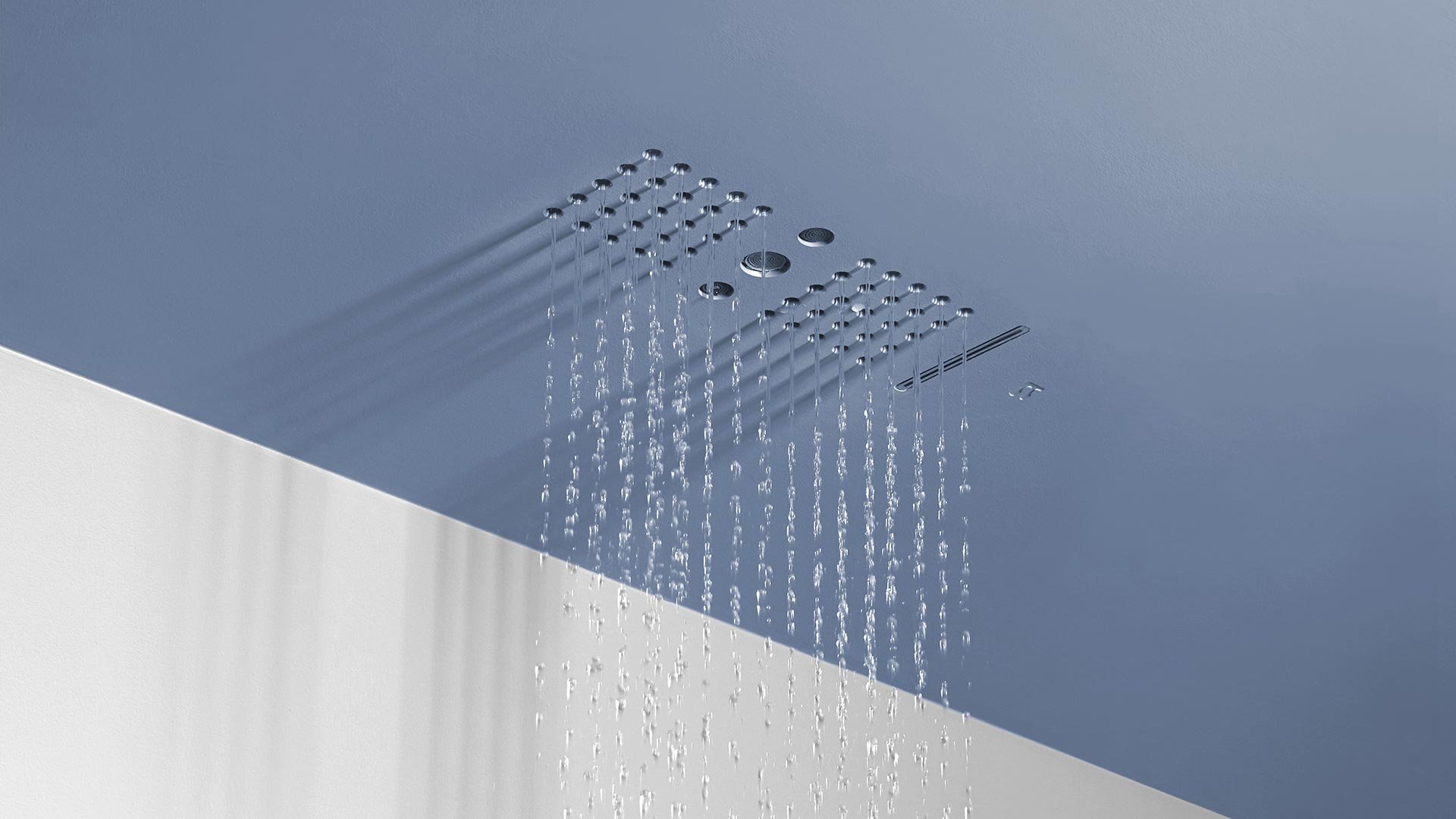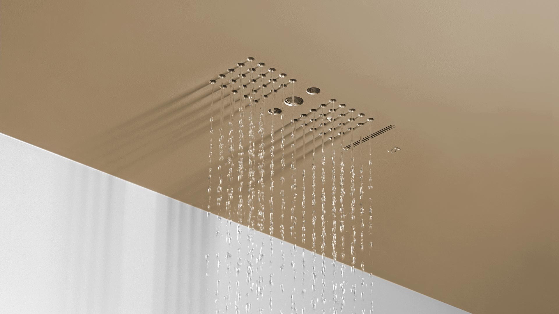 所有这些都被封闭在一个 25x53 厘米的区域内,这是隐藏在视线之外的先进技术和复杂机制的集中体现。Ghost_COMBI和整个 Ghost 家族一样,消失在天花板中,完美融入表面,开启时仅部分显露。喷头的交替增加了惊喜效果,淋浴头的形式清洁及其所有部件的尺寸平衡诠释了 antoniolupi 风格的形式严谨和现代形象。