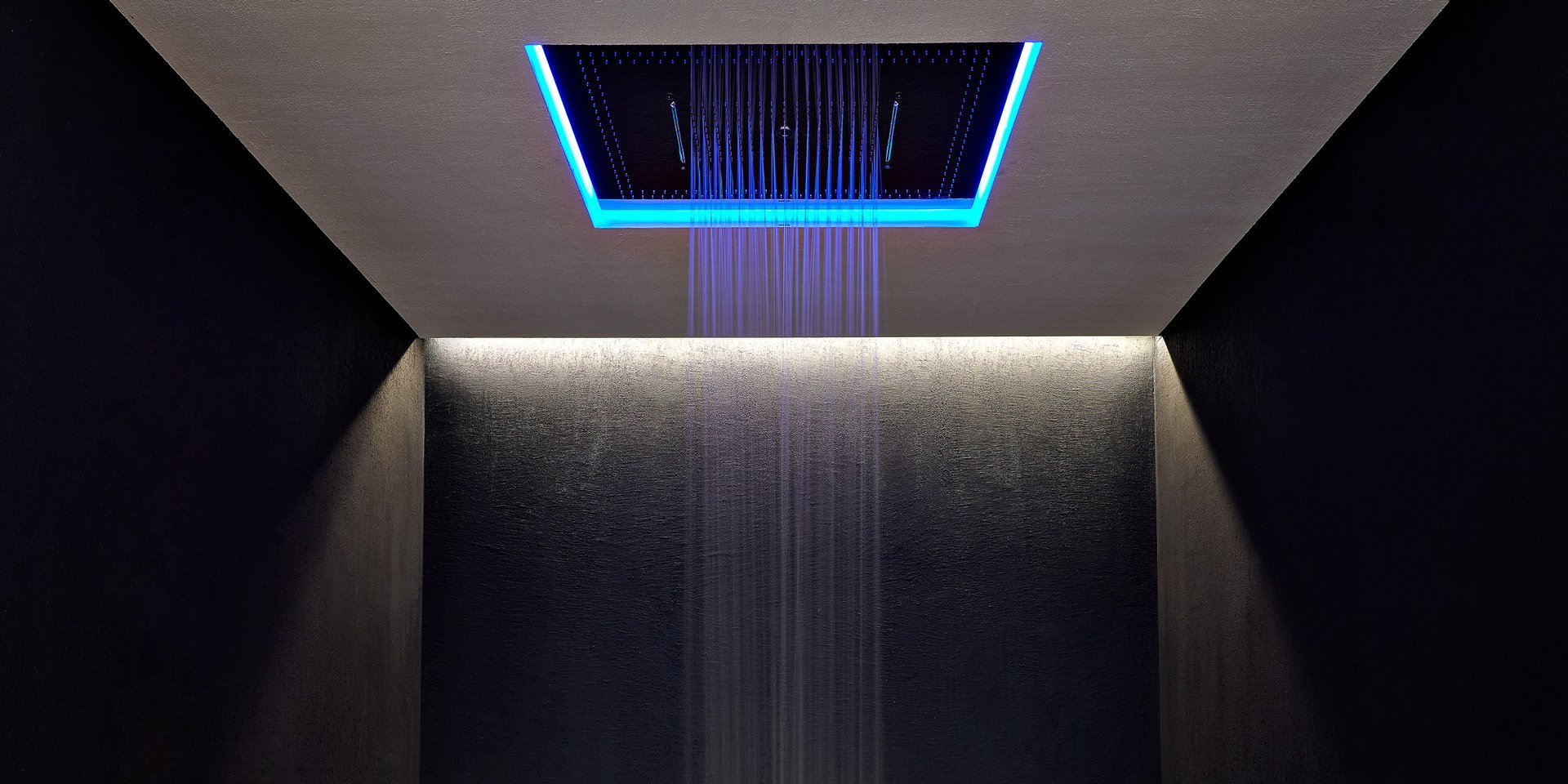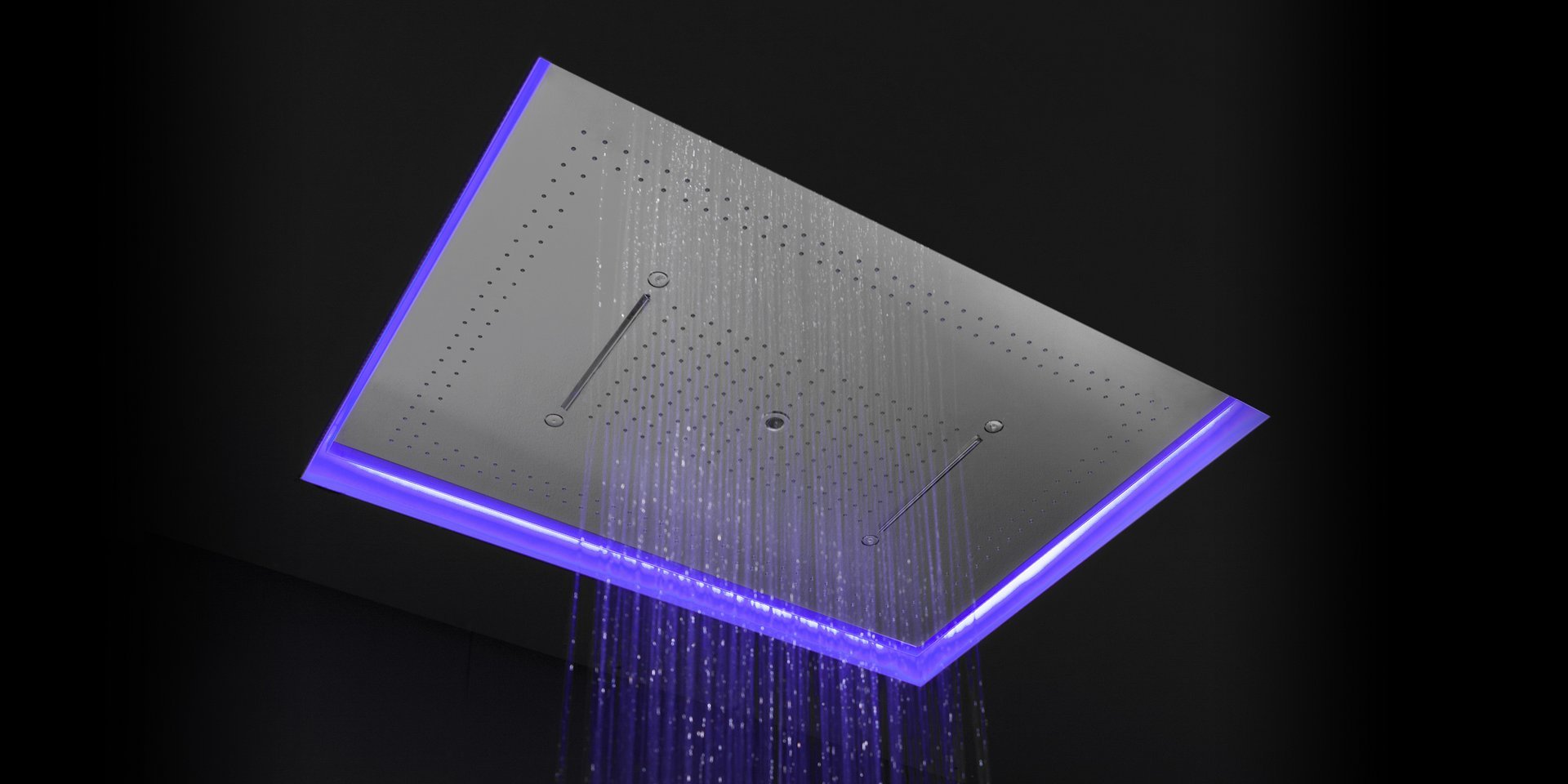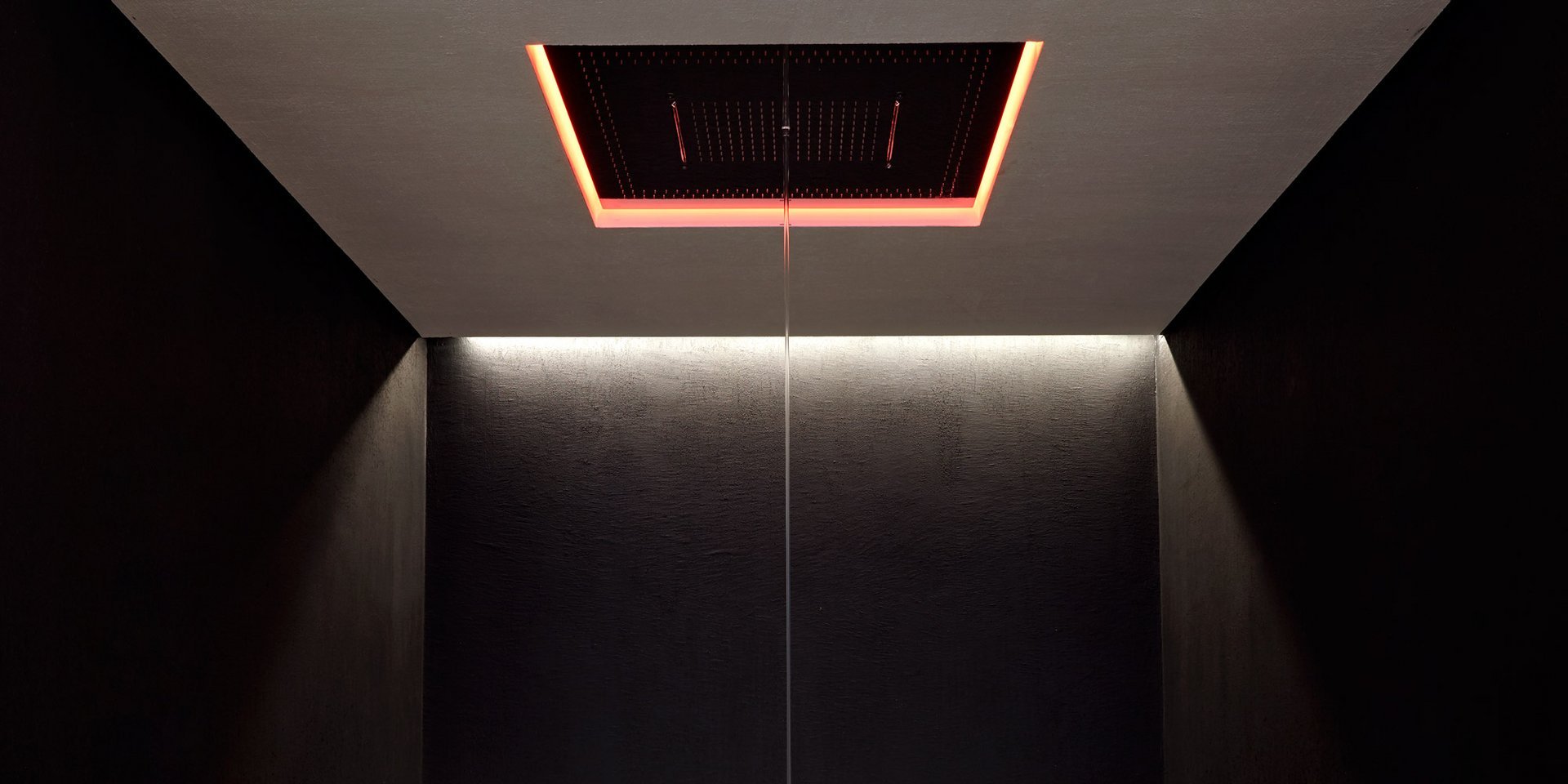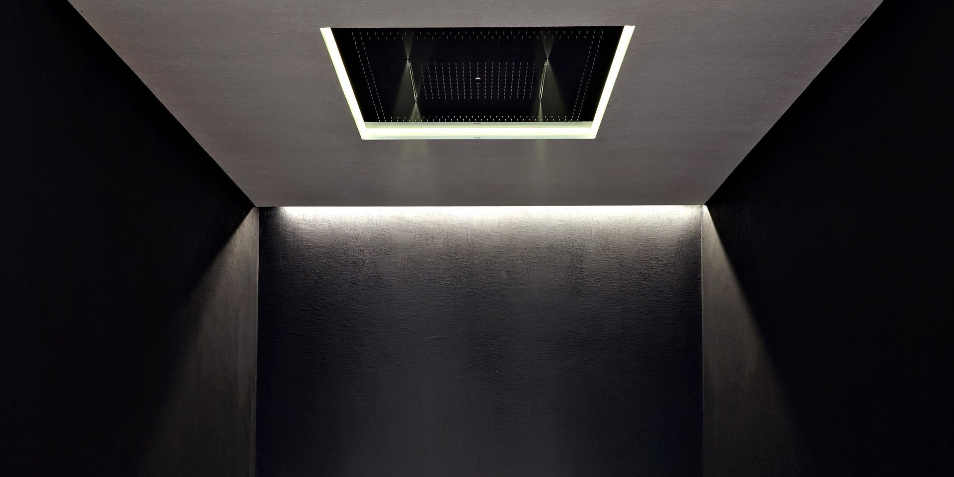 体贴的尺寸使 Meteo XXL 能够容纳传统模块:两个瀑布、4 个雾化器和一个由双排交错喷嘴制成的周边屏障。这种配置增加了系统的功能性,并通过分隔屏障促进了在没有传统淋浴间的位置的安装。这两个瀑布有一个斜射流,在中心相遇,并且在中心是一个特殊的喷嘴,可以产生非常强烈的射流。内置淋浴喷头采用不锈钢材质,镜面或白色饰面,RGB LED 集成照明(色光疗法功能),包括遥控器。光线增加了空间的体积并传达了感性。Meteo 是一个空旷的空间,水和光来自于此,可以实现极致的个性化放松。
