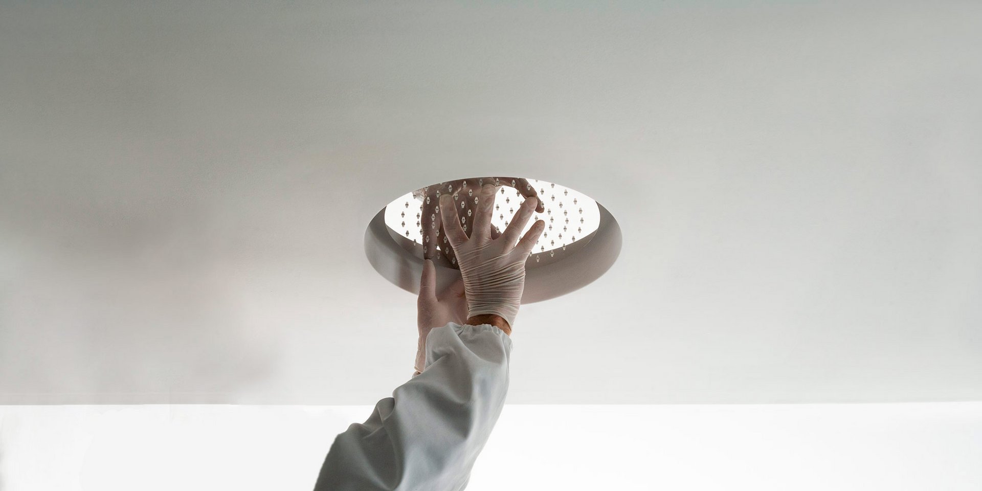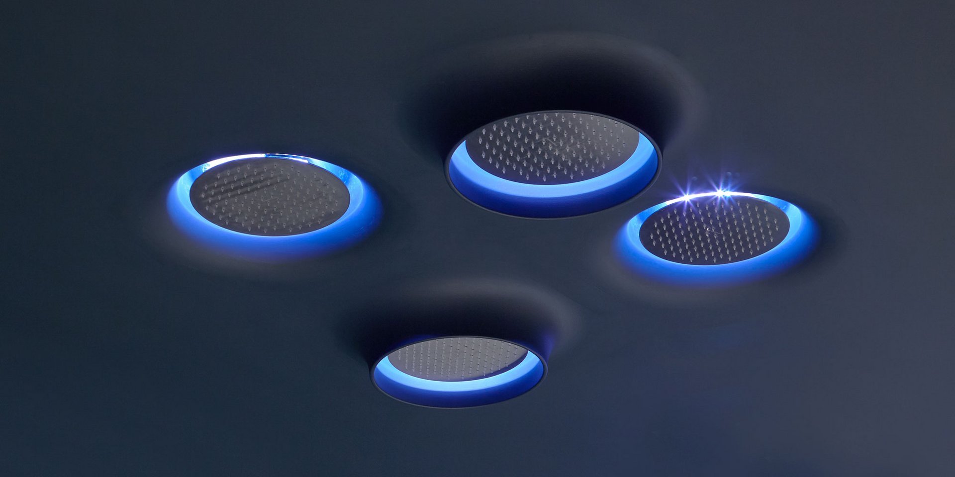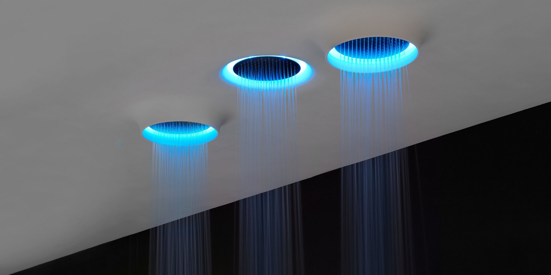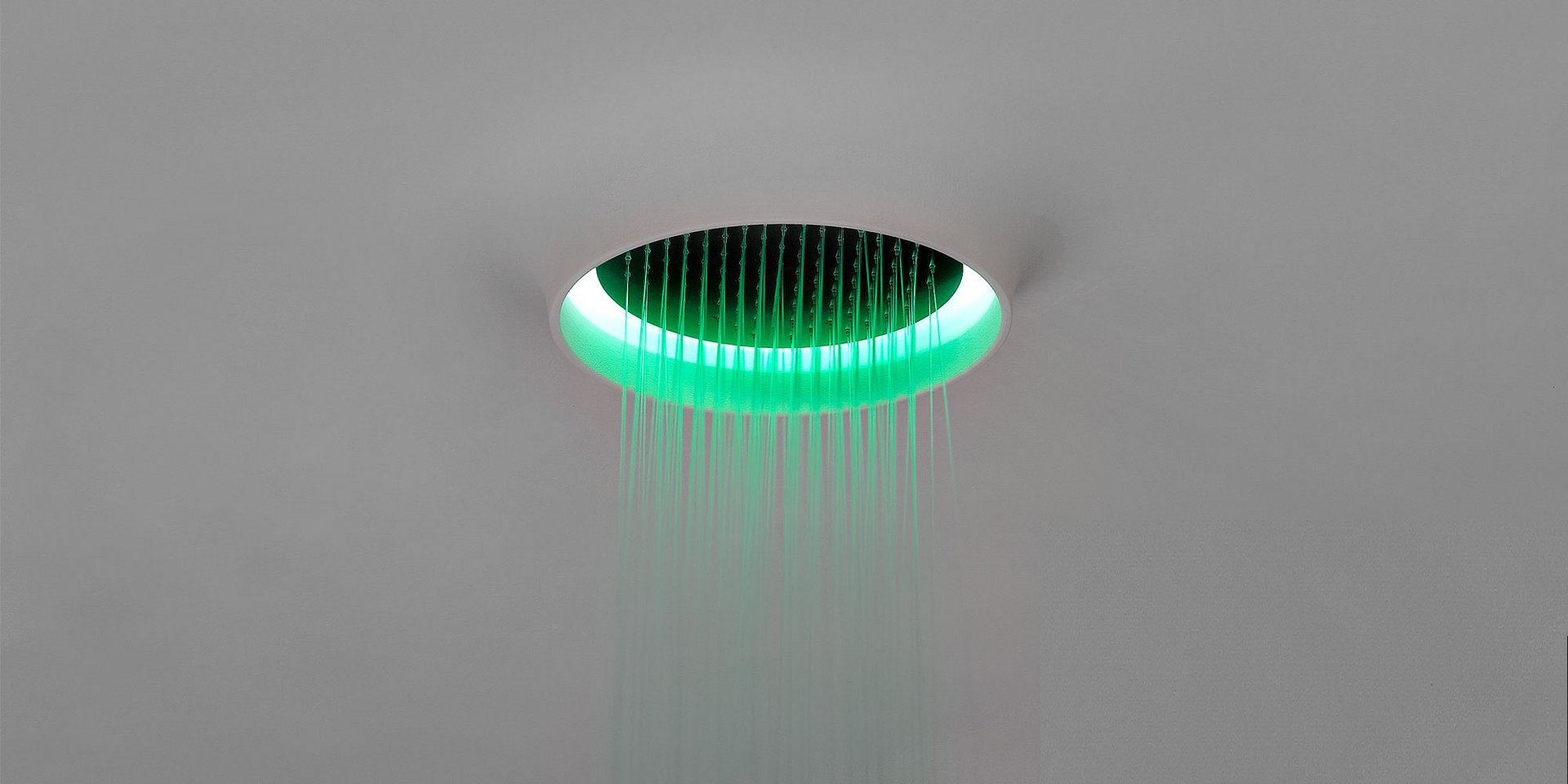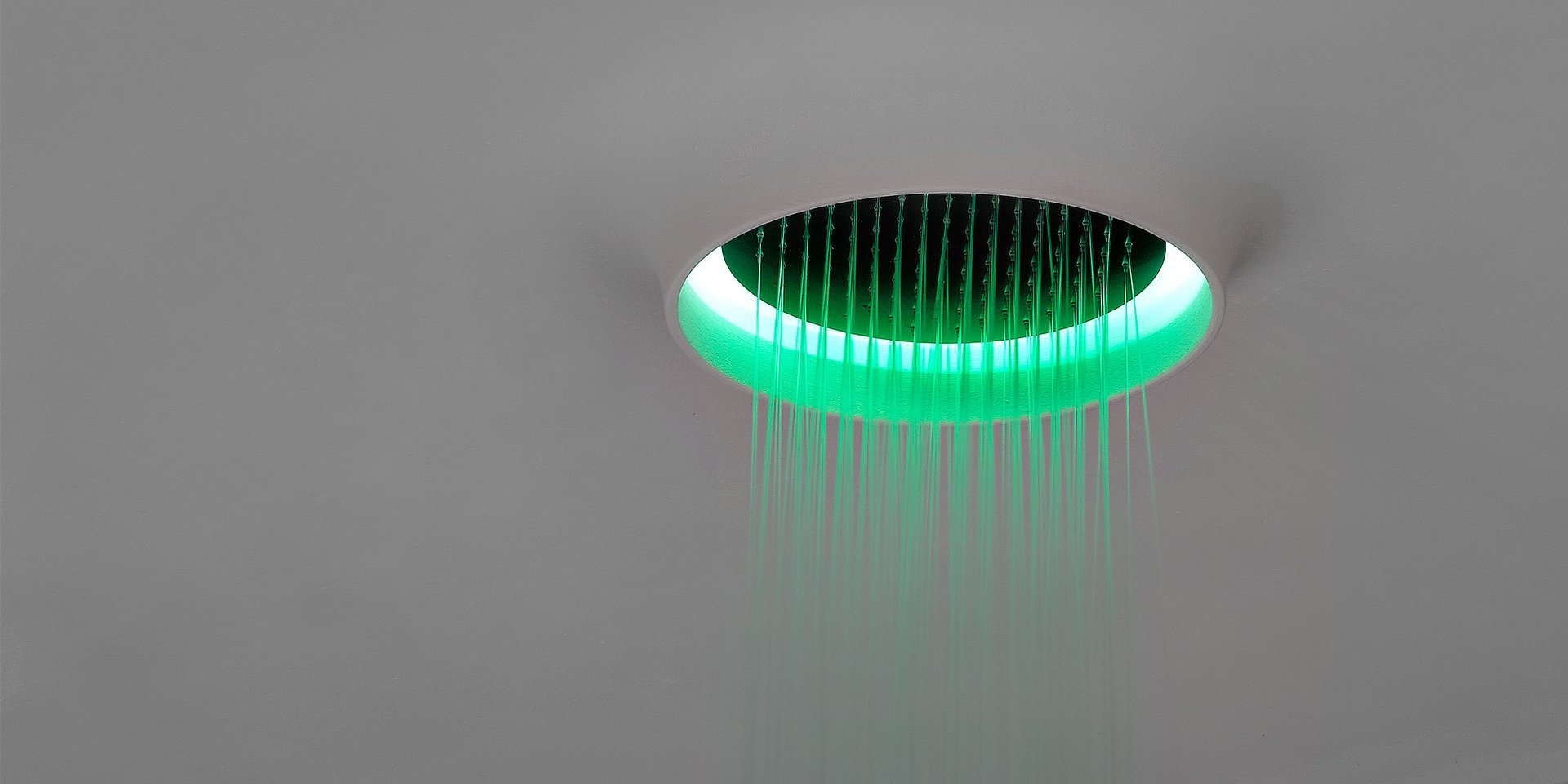 柔软、有机的体量,自然的形状,健康的爆发,从完美的圆形几何图形中雕刻出来的空间,无缝地融入天花板,无缝地打开表面以释放最大的放松:Meteo_Out 是一种新的淋浴喷头,结合了水的力量与色彩疗法的有益效果。