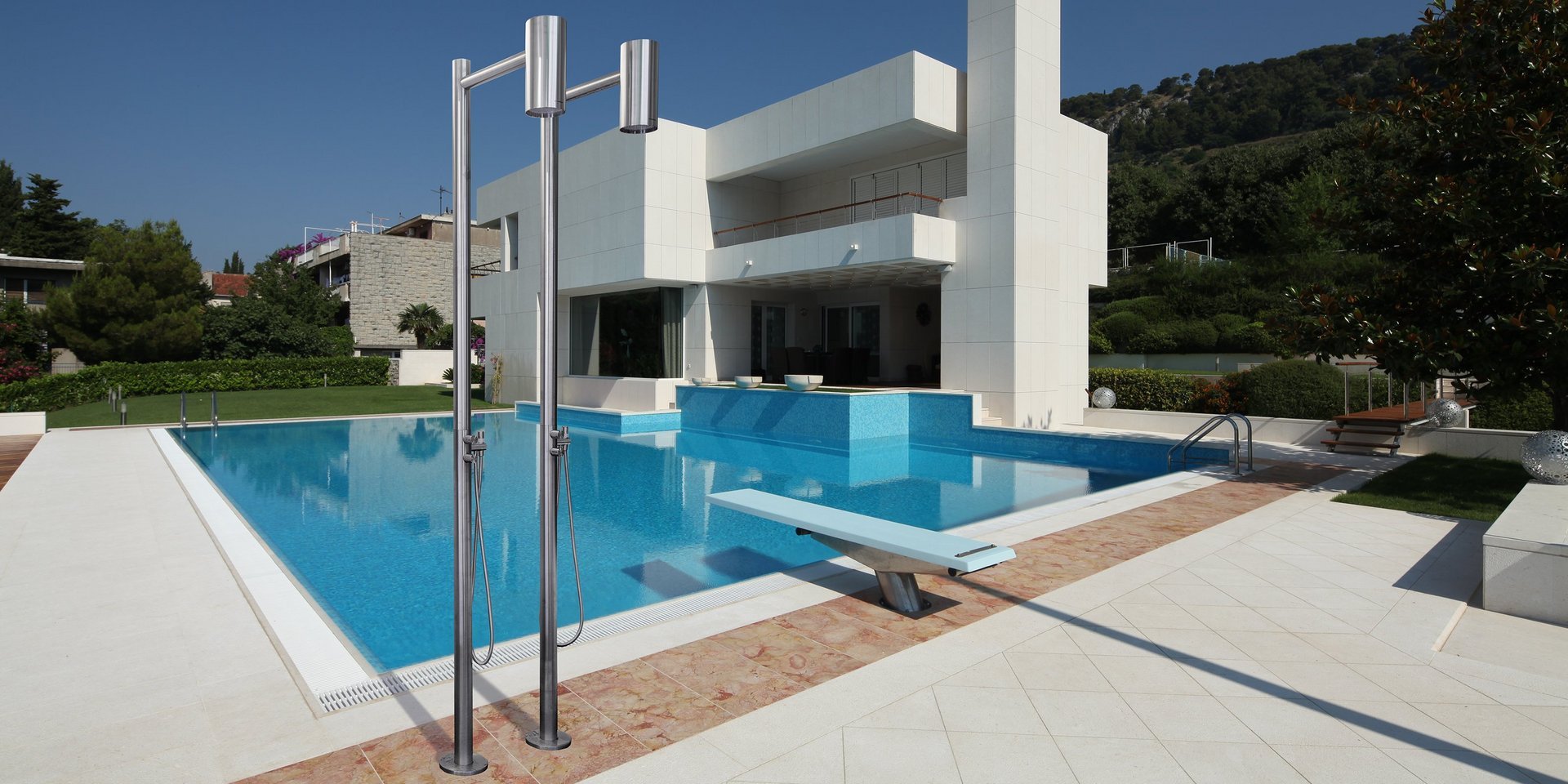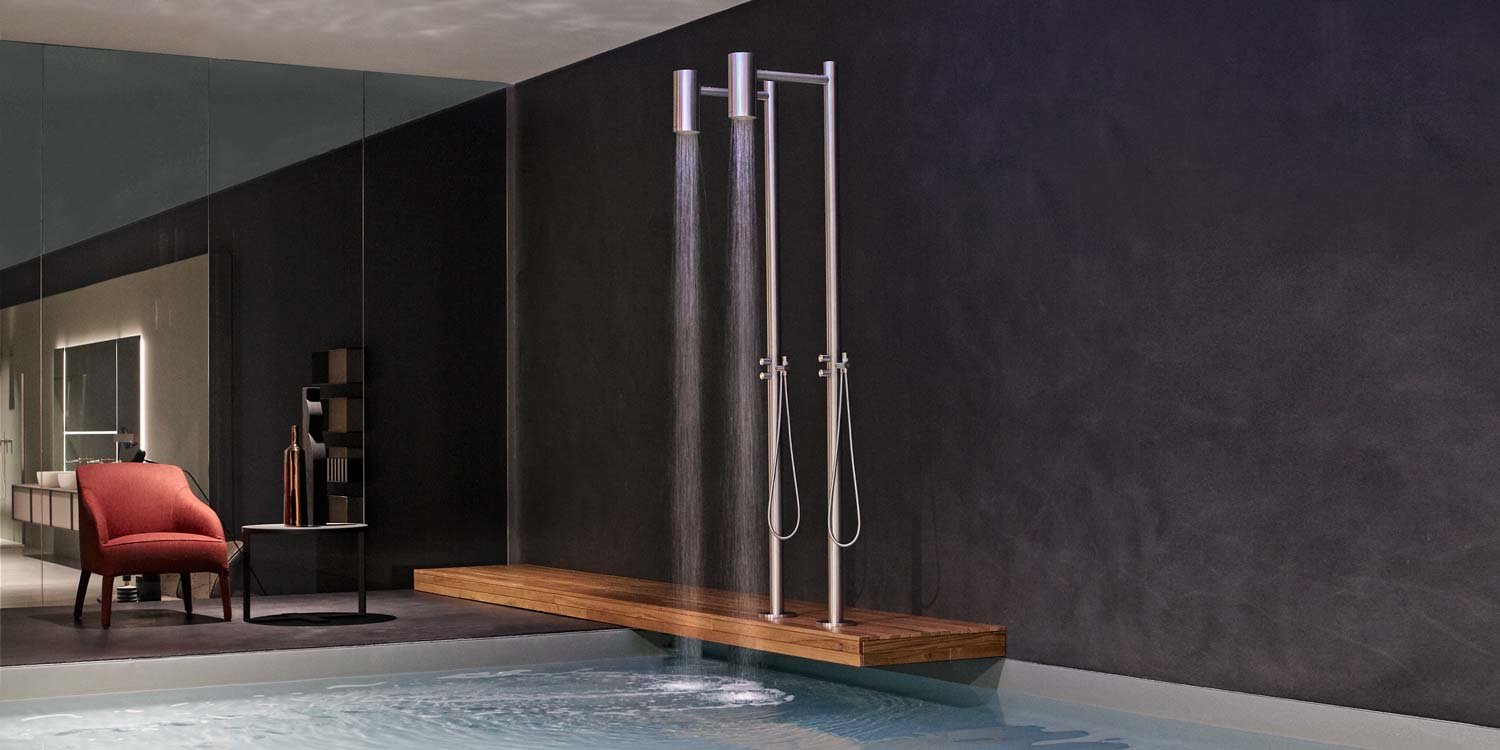 形状必不可少,但具有强大的舞台表现力,可以从形状和纯粹体积的完美组合中生成干净、标志性的图像。一个完全工业化的项目……它指的是一个典型的工业装置,带有裸露的管道和渠道,通常在工厂中居住,而今天,在更现代的版本中,可以在阁楼或时尚的房屋中找到。介于都市氛围和工业美学之间。Shawà 是室内或室外使用的理想之选,具有强烈的存在感,令人印象深刻但不笨重,意味着对空间的放松。室外版本可以配备带两个瀑布版本的手持花洒,非常适合池畔情况。