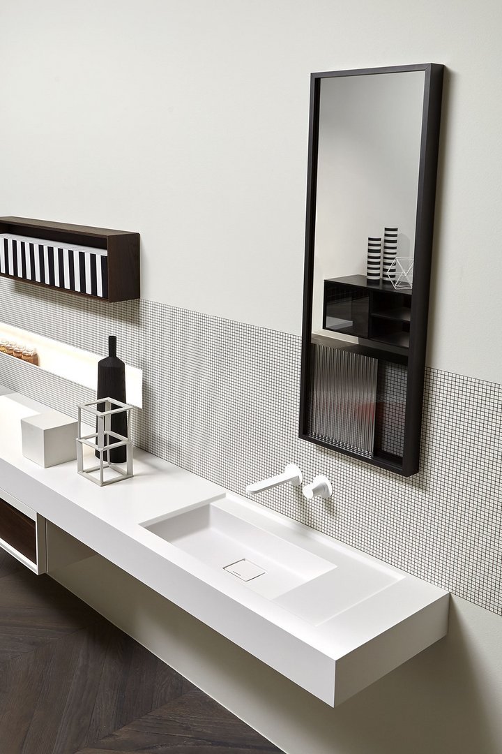 一系列玻璃层,通过这些层产生不协调、透视、反射和前所未有的视觉,这个项目丰富了反射表面,为能够与空间和光交流的元素赋予生命。玻璃一直是 antoniolupi 的首选材料,由于其表面处理的完美性,它展现了其所有的表现潜力。