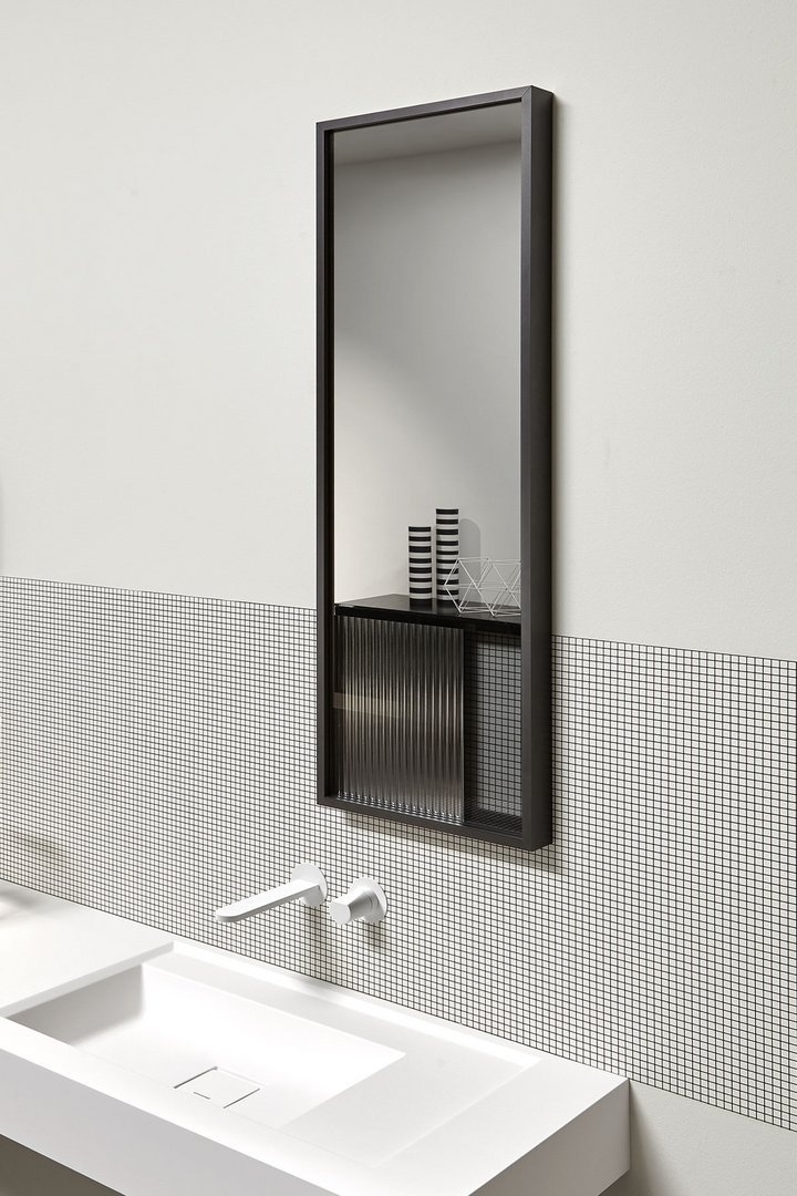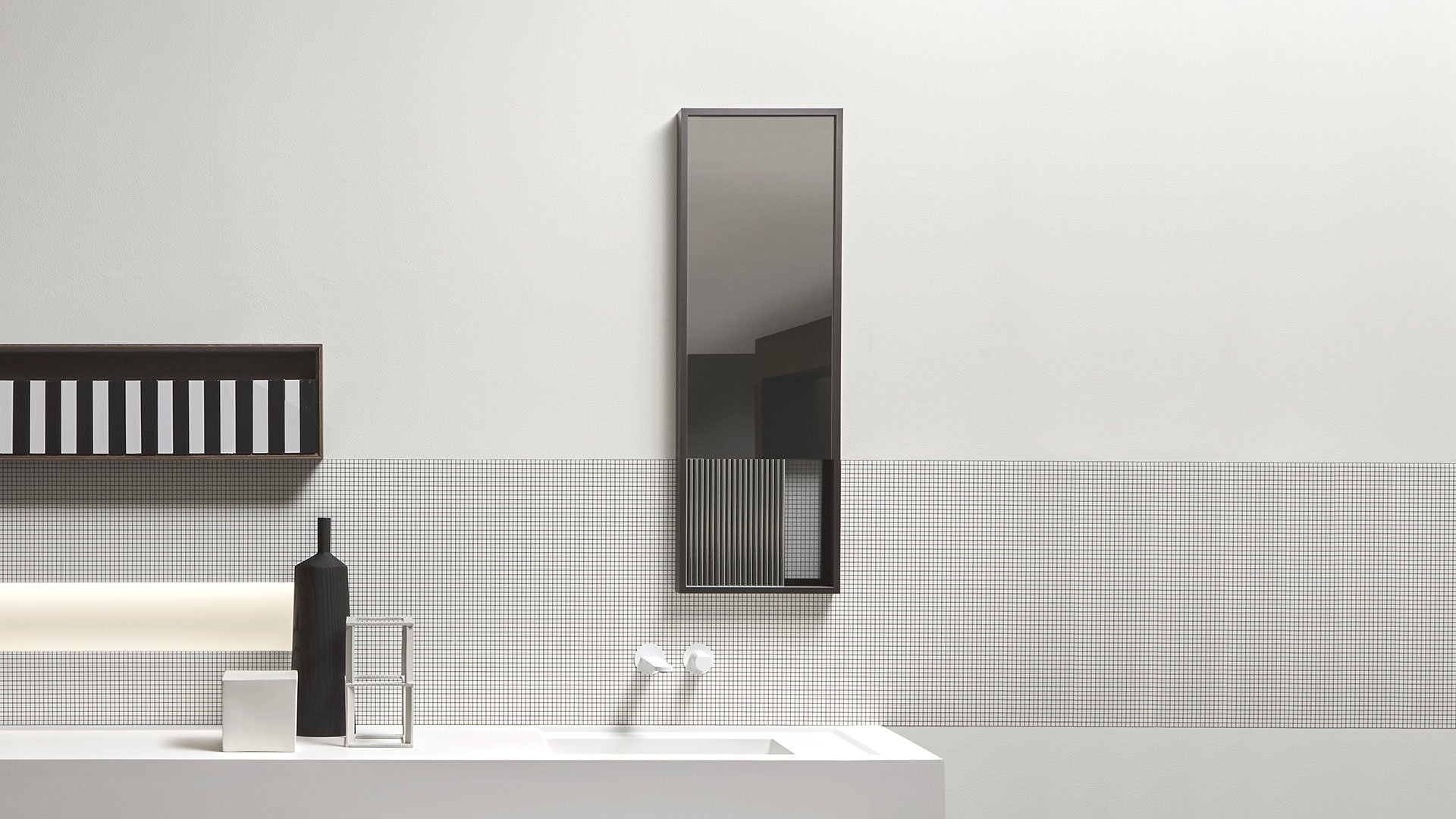 Tratteggio 是由不同饰面的玻璃板重叠而成的镜子系列,银色、银色凹槽和透明烟熏,产生不同的情感和新的感觉。这些部件被放置在一个严格而基本的框架内,定义了镜子的一部分,以表征其形象并装饰表面,但不会凌驾于其干净和精致的美学之上,相反却增加了价值和意义。