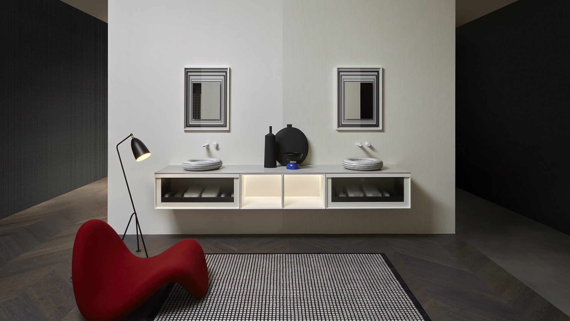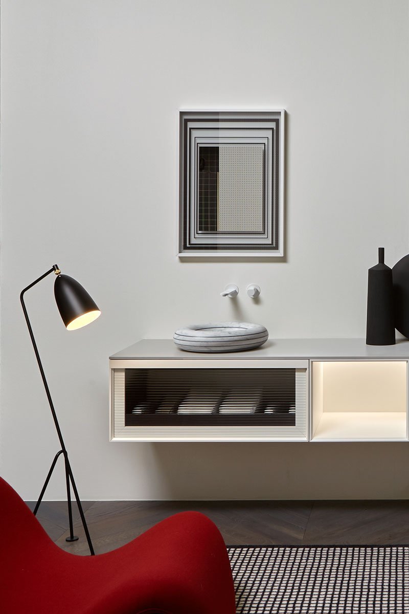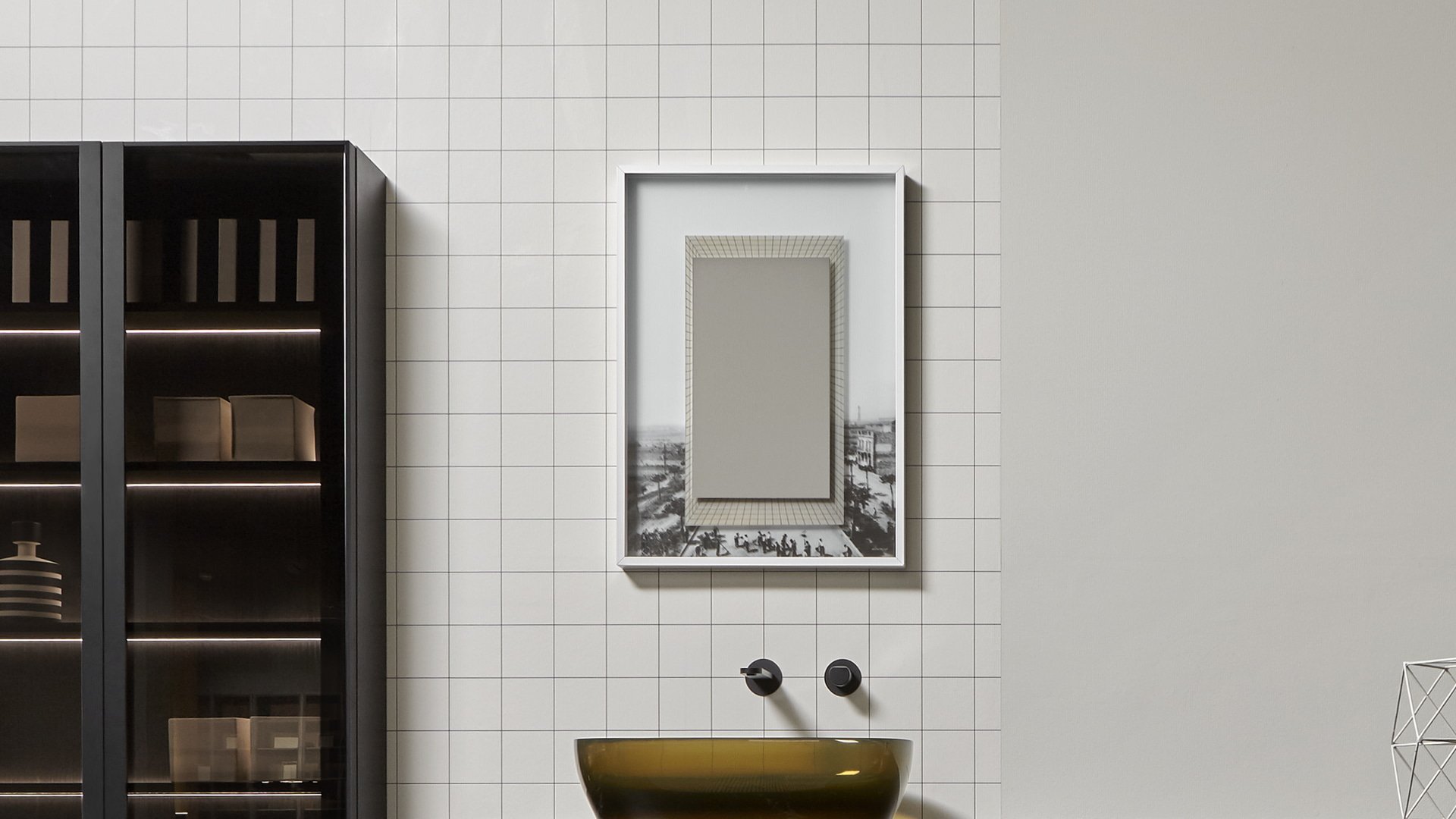 规则的几何图案、层和彩色表面的重叠、反射的连续参考和不透明的游戏。全部封闭在一个优雅而绝对的金属框架中,采用哑光白色饰面。拼贴系列的精巧偏斜,白色是一系列镜子,在几何形状上播放,主要是黑白或很少的颜色,根据灵活和可定制的方案构成它们。然而,现代形象源于对过去设计趋势的明显参考,唤起了人们的风味和氛围。