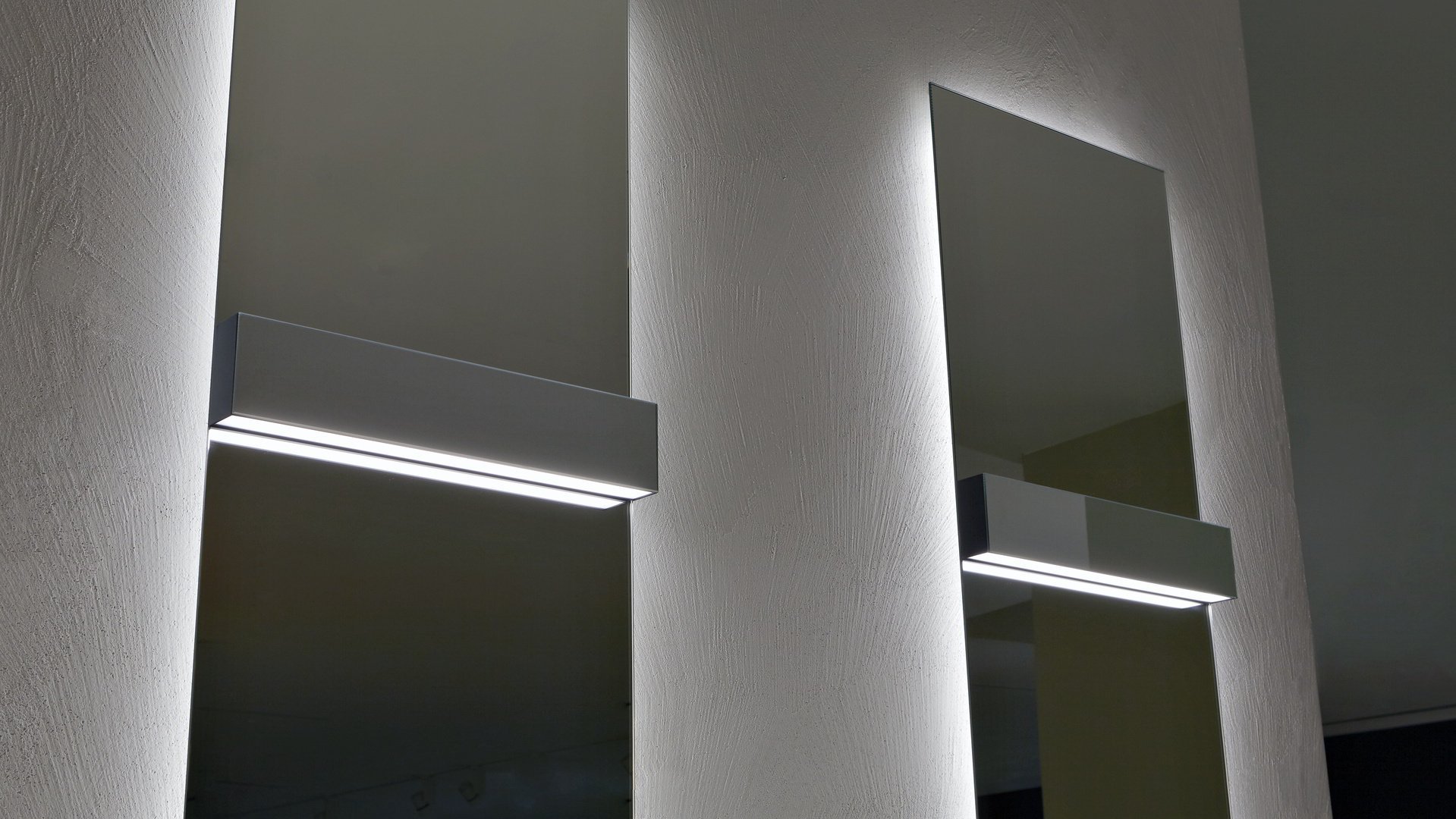 本质和严谨,能够在不使用时完全消失,一旦打开就会神奇地重新出现。Lucente 是一盏由简洁而简约的灯条制成的灯,由于其带镜面的前盖,可以完美地将自己隐藏在镜子本身中。
