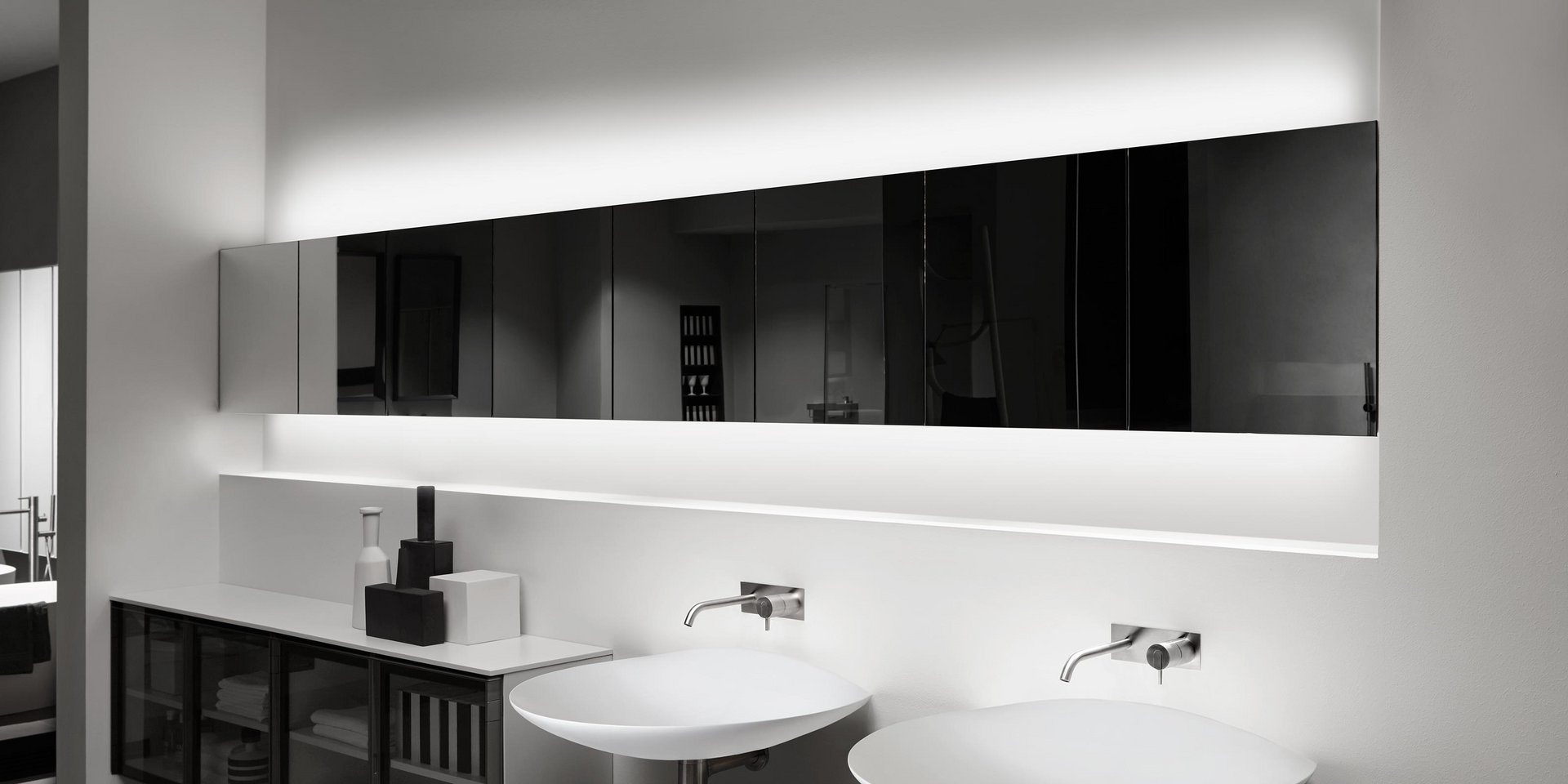 必不可少的,绝对的,没有任何装饰。纯粹的几何形状、锐利的边缘和完美的角度描述了可以适应任何环境的图像。依序排列,Mantra 是一款壁挂柜,带有两个双面镜门,通过简单地将其挂在墙上或嵌入壁龛中,将美学和功能结合在一起。