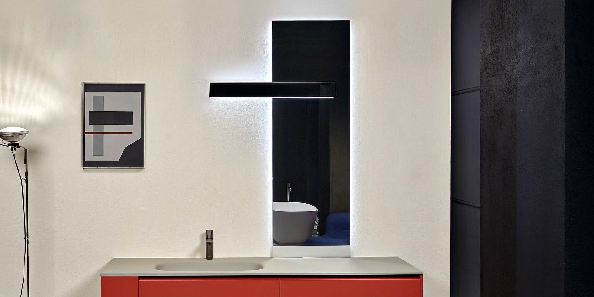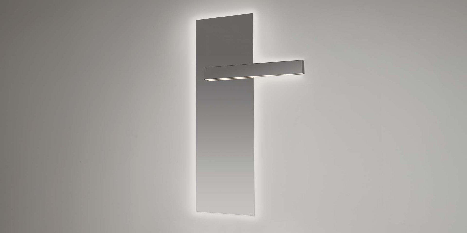 抛光边缘镜 5 毫米厚,带有白色 LED 灯,配有框架和灯 LUCENTE,左右手版本。