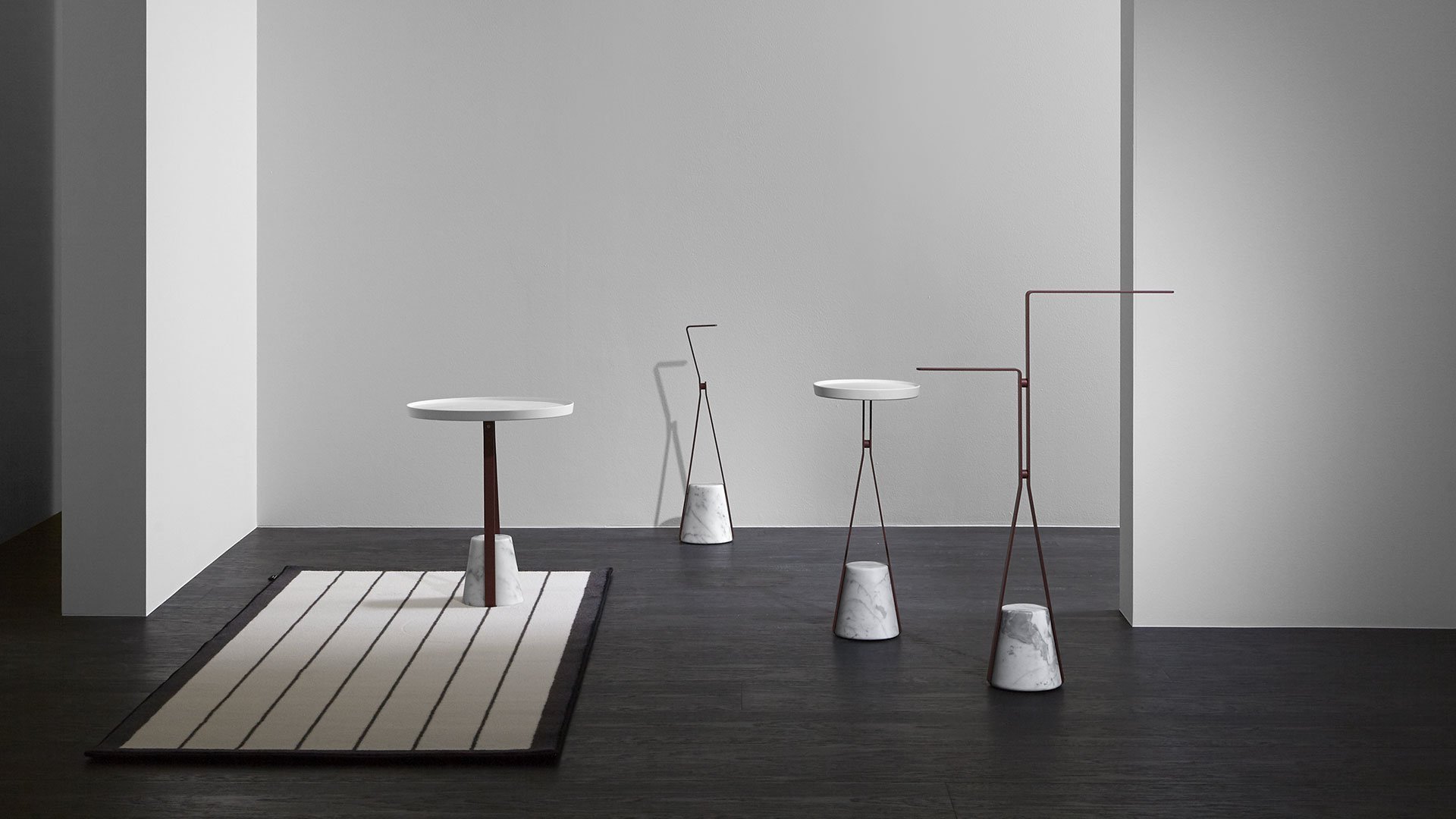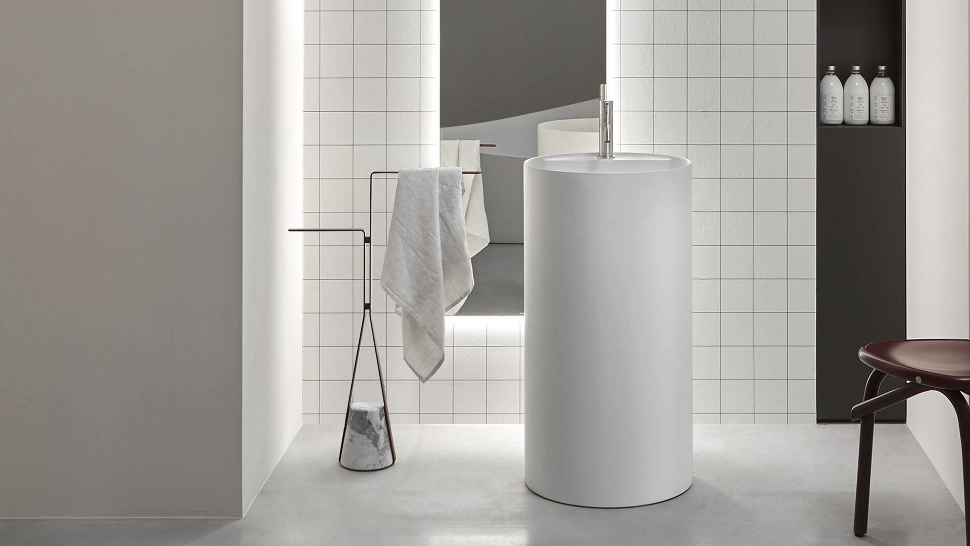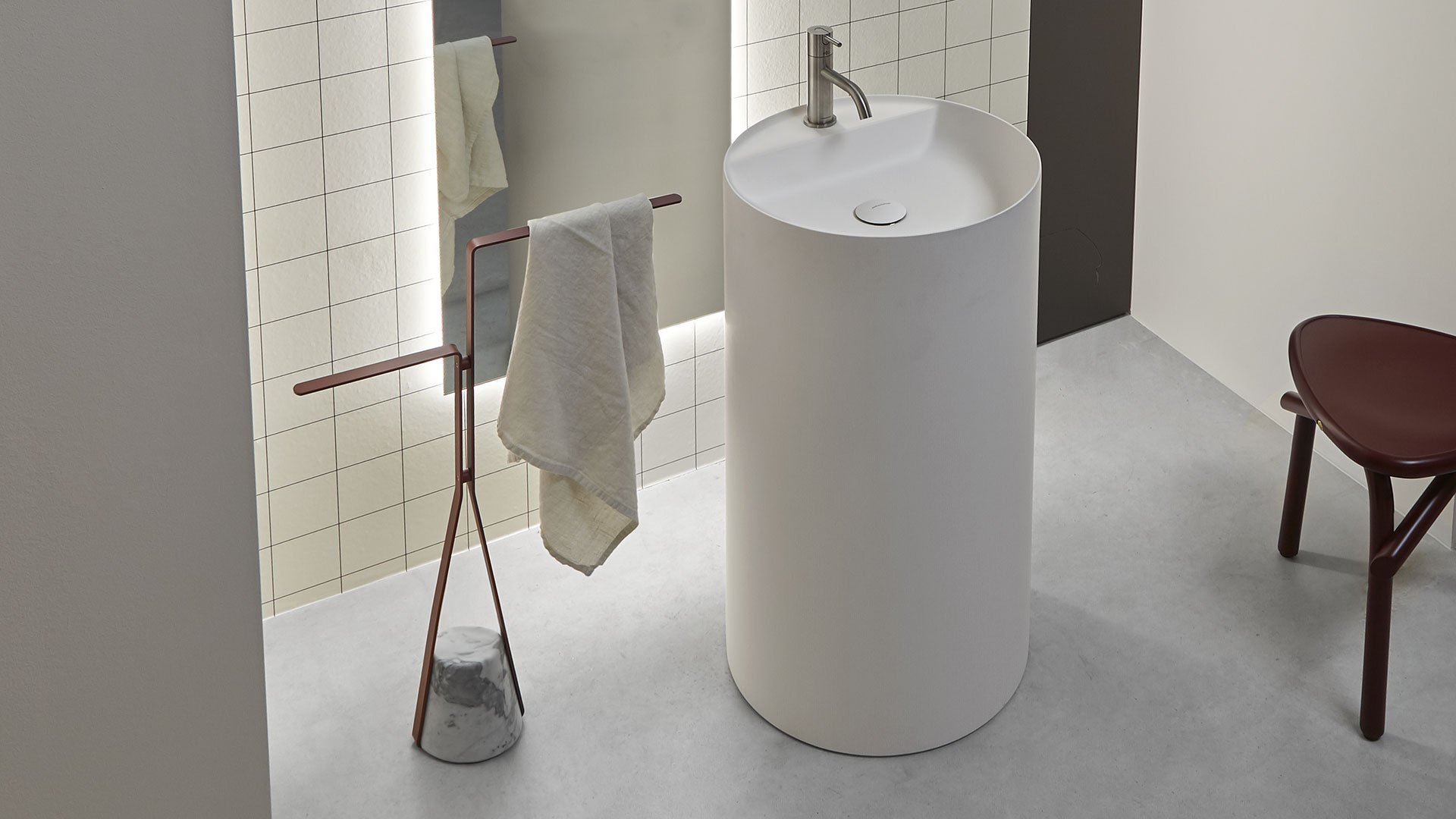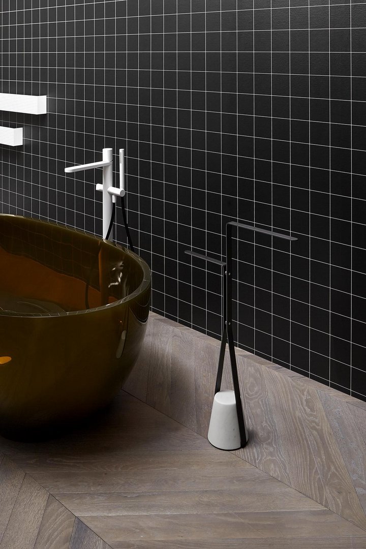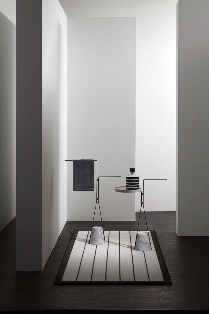 基地的材料特性,结构所描述的优雅路径,结合在一起,形成了一种平衡,这种平衡源于悬停在空中的愿望与与之相反的重力之间的对比,以将其固定在地面上。就像向下拖动的弹性,但随后会发现阻力和一致性,进而成为支撑。Halo 是一个独立式配件和桌子系列,重新定义了浴室内日常使用的功能元素的形象,但也可以用于房屋的其他房间,例如门挡版本。
