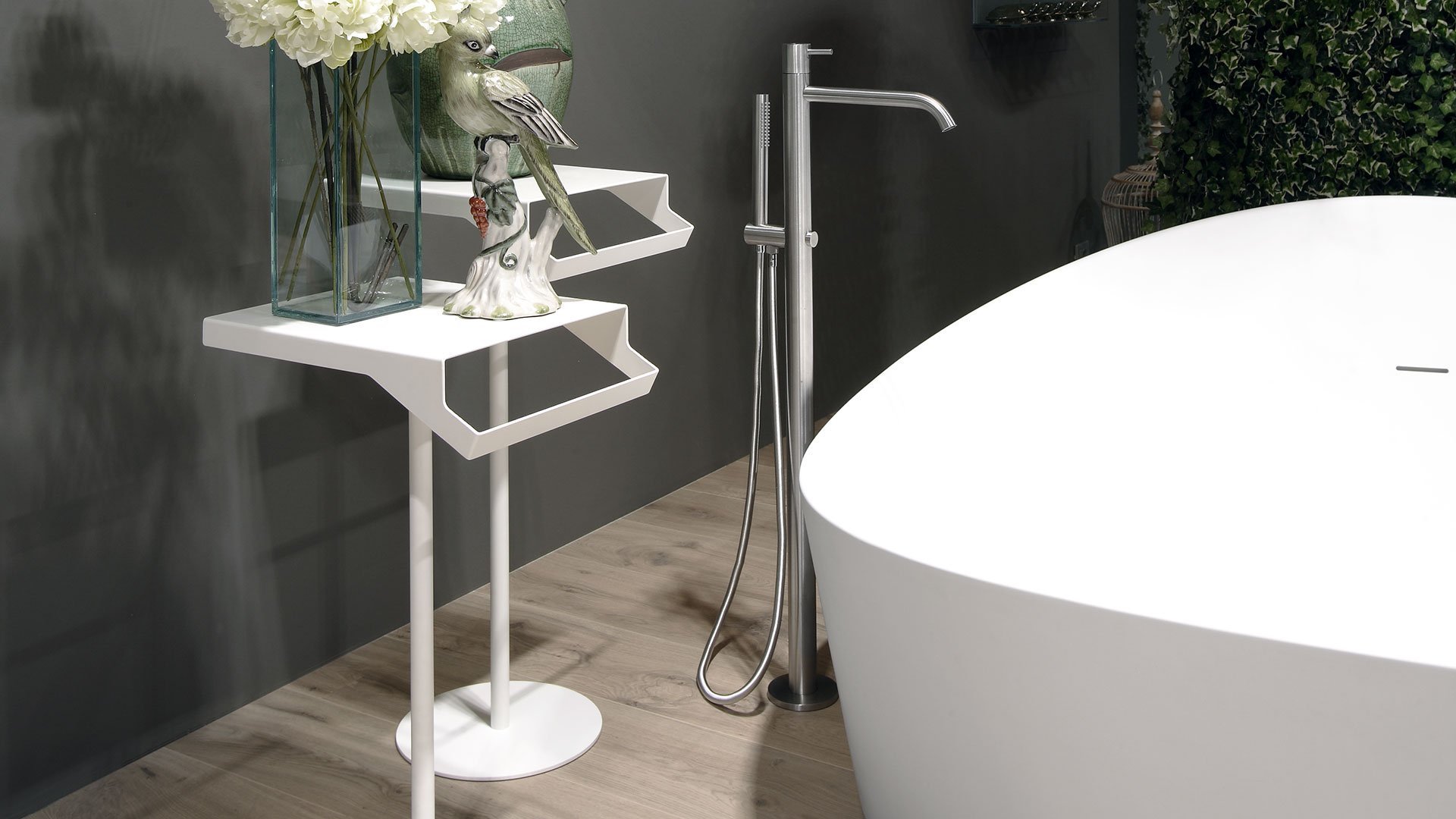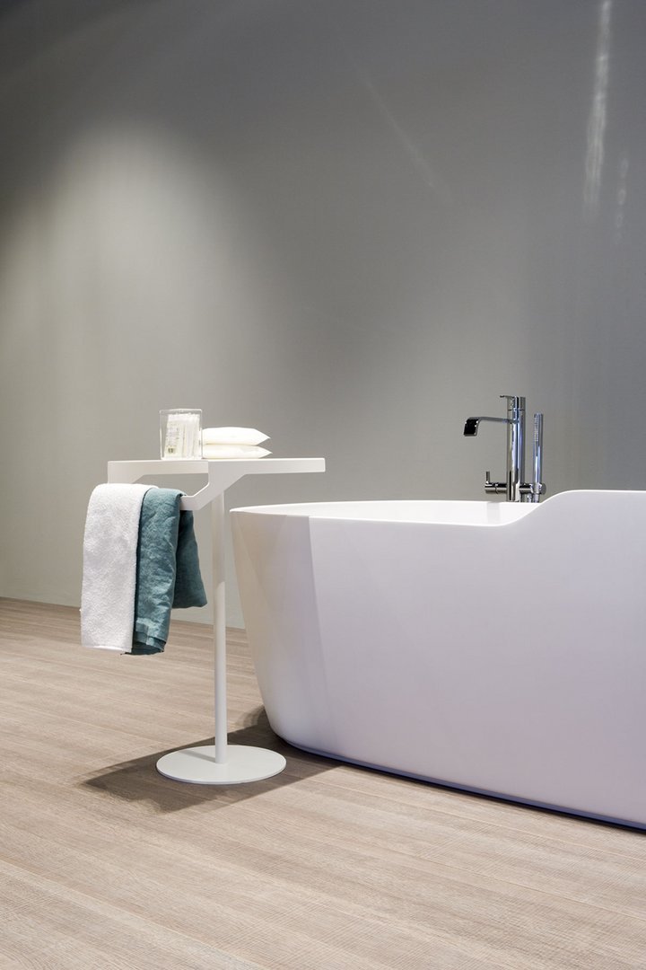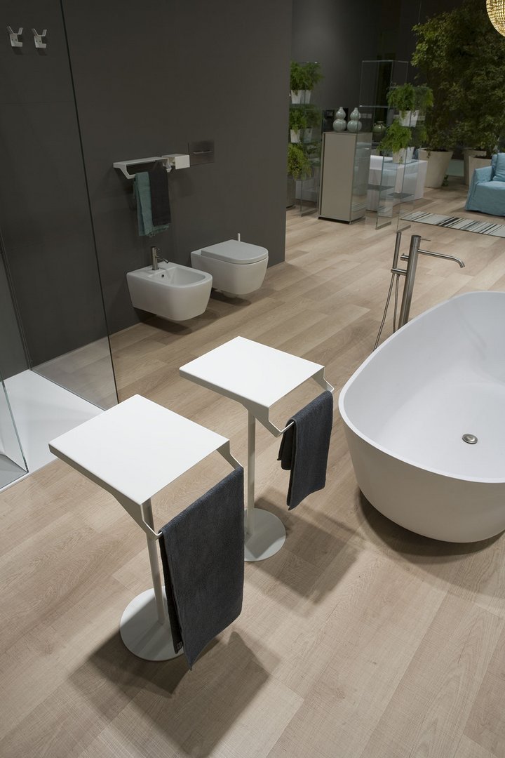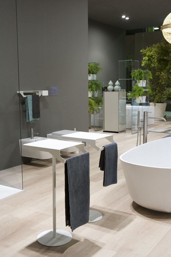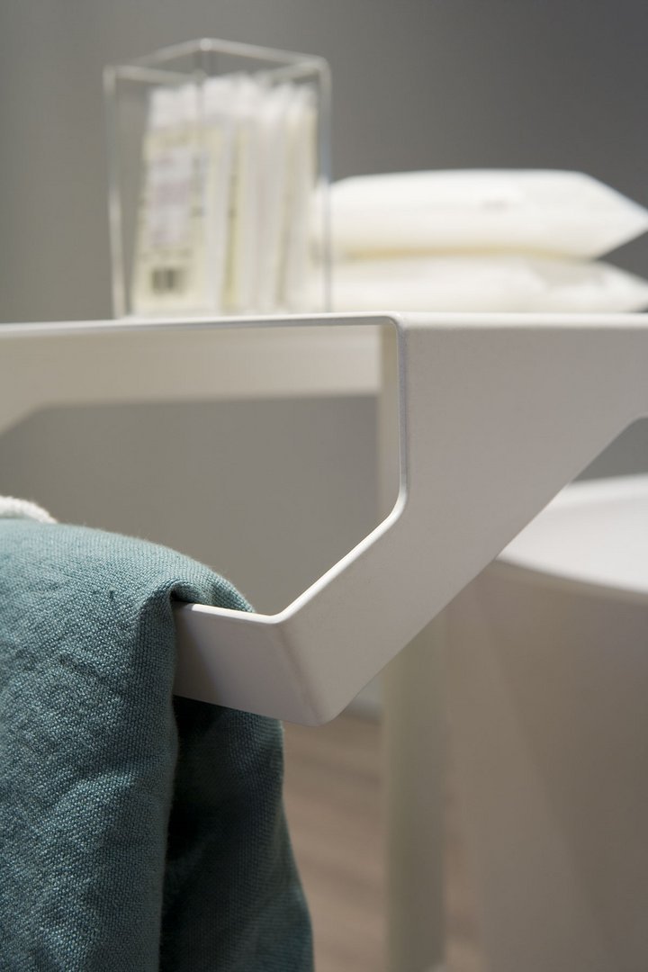 根据 antoniolupi 色卡,具有双重功能的桌子、桌面和毛巾架采用不锈钢烤漆哑光白色、哑光黑色或压纹颜色。Gino 的灵感来自 Qgini 系列,它提供了一张独立式桌子,可轻松放置在浴室的任何地方。一个忠诚而有价值的仆人,一个有用和愉快的存在,完成了空间内主要物品的功能,与具有动态线条的物体以及具有柔和弯曲形状的元素有关。