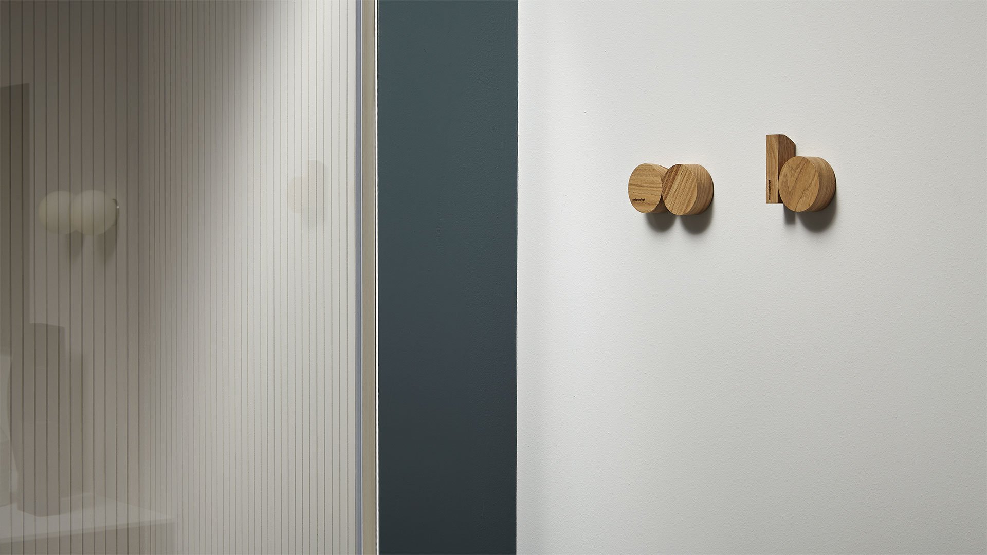 旋转等简单手势的美学,简单形式的构成平衡,两个元素的互补和依赖,只有当它们在一起时才会存在。Gravità 是自然色或深色橡木饰面的衣架,由两个几何图形、一个圆柱体和一个平行六面体或两个圆柱体组合而成,表面上是静止的,但实际上能够活跃起来。事实上,正是这两个元素之一在自身上的旋转,实际上让我们能够表达整体的功能。
