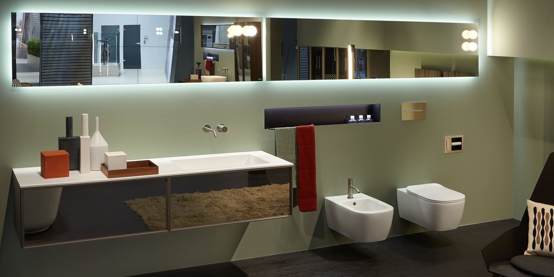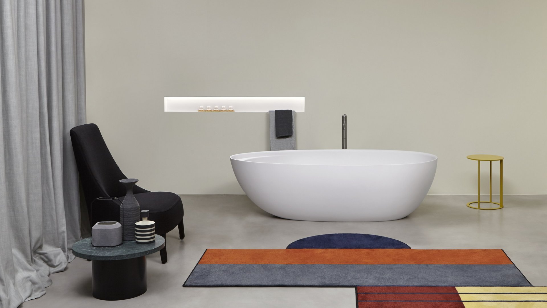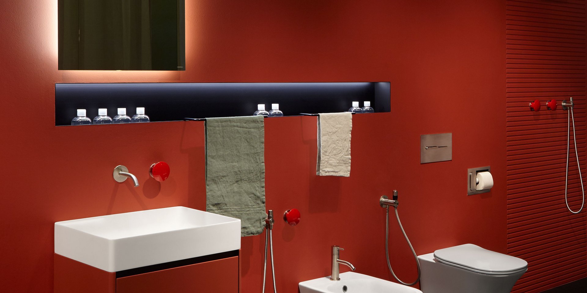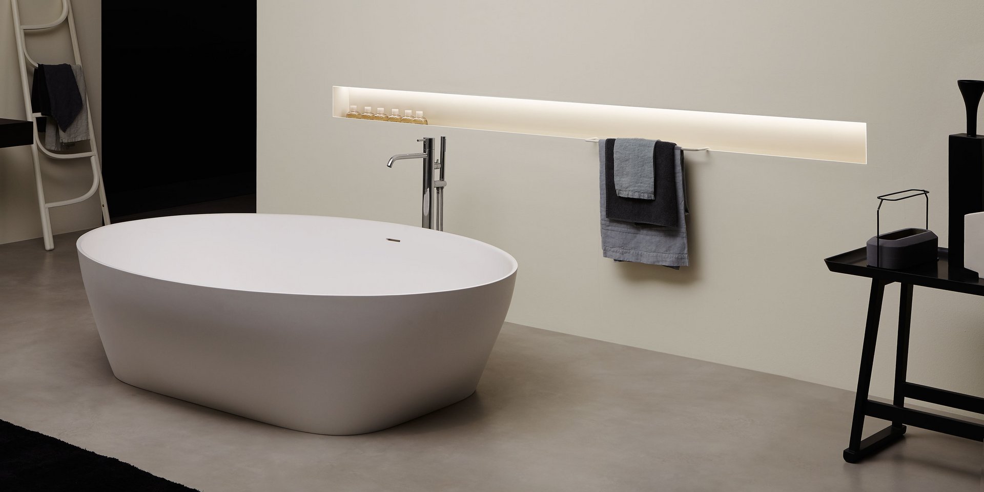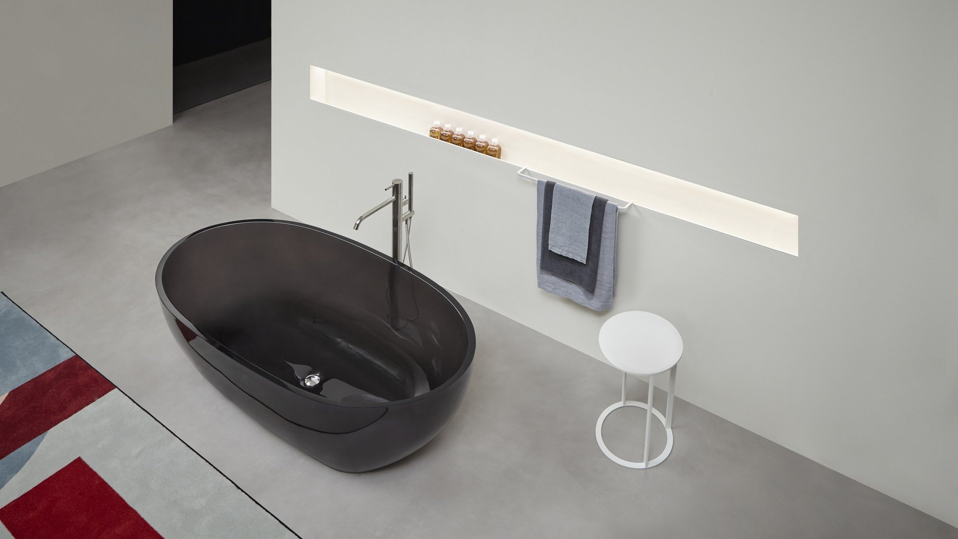 对实体和空之间关系的发挥,强调了缺席的重要性,它通过形成体积的周边表达,源于墙壁上绘制的阴影的强度,突破表面成为一个有用和优雅的容器:Ombra是从一系列涂漆铝型材中获得的配件,可让您创建一个空白空间,用于放置所有可放入浴室的物品和配件。