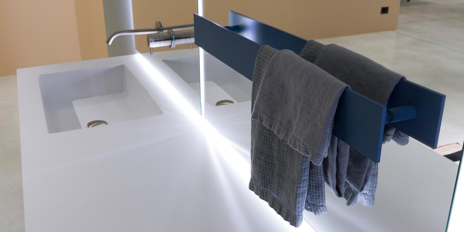 一条标记高度的线,一个绘制墙壁的元素,一个服务对象,可以成为一个有价值和珍贵的组成部分,从美学上定义每个空间。功能性和优雅,Retta 可以定制,加倍并放置在不同的高度,安装在镜子上或散热器前面以增加功能。