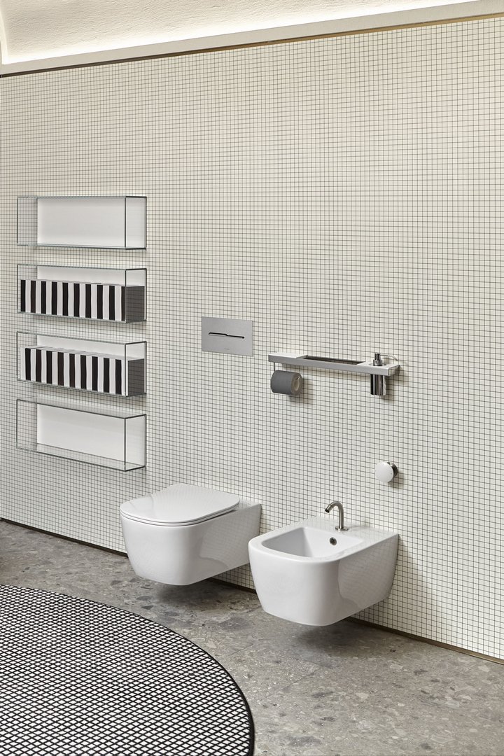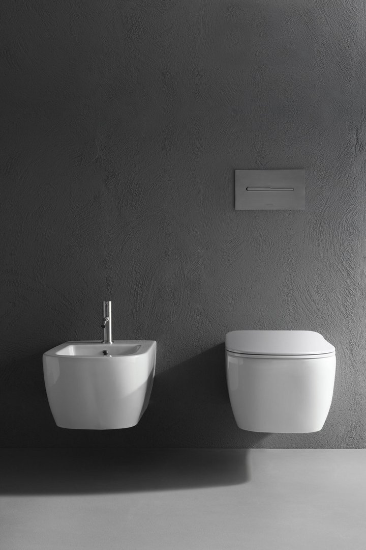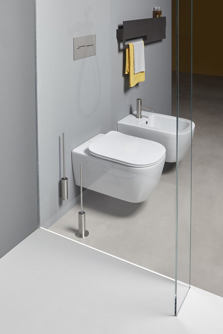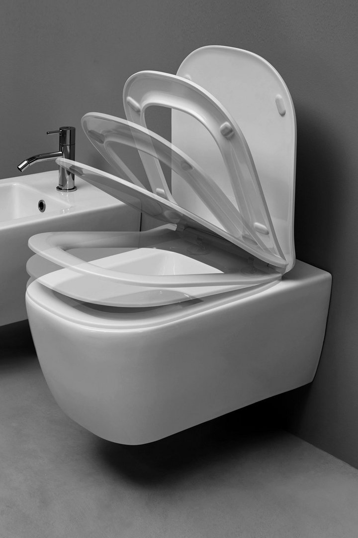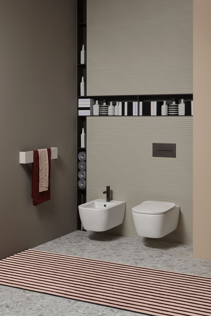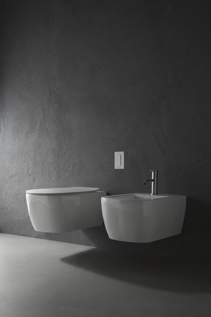 由直线和曲面的有机合成产生的干净的基本图像,它们整合在一起,从当代美学中创造出紧凑的元素。Komodo 是一系列由光面或亚光陶瓷制成的悬挂式卫生洁具,配有可拆卸的热固性座套、软关闭铰链和带有单中心龙头孔的坐浴盆。