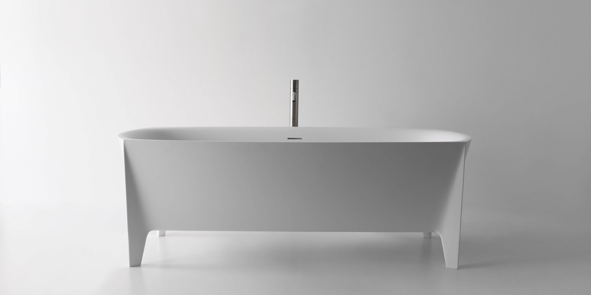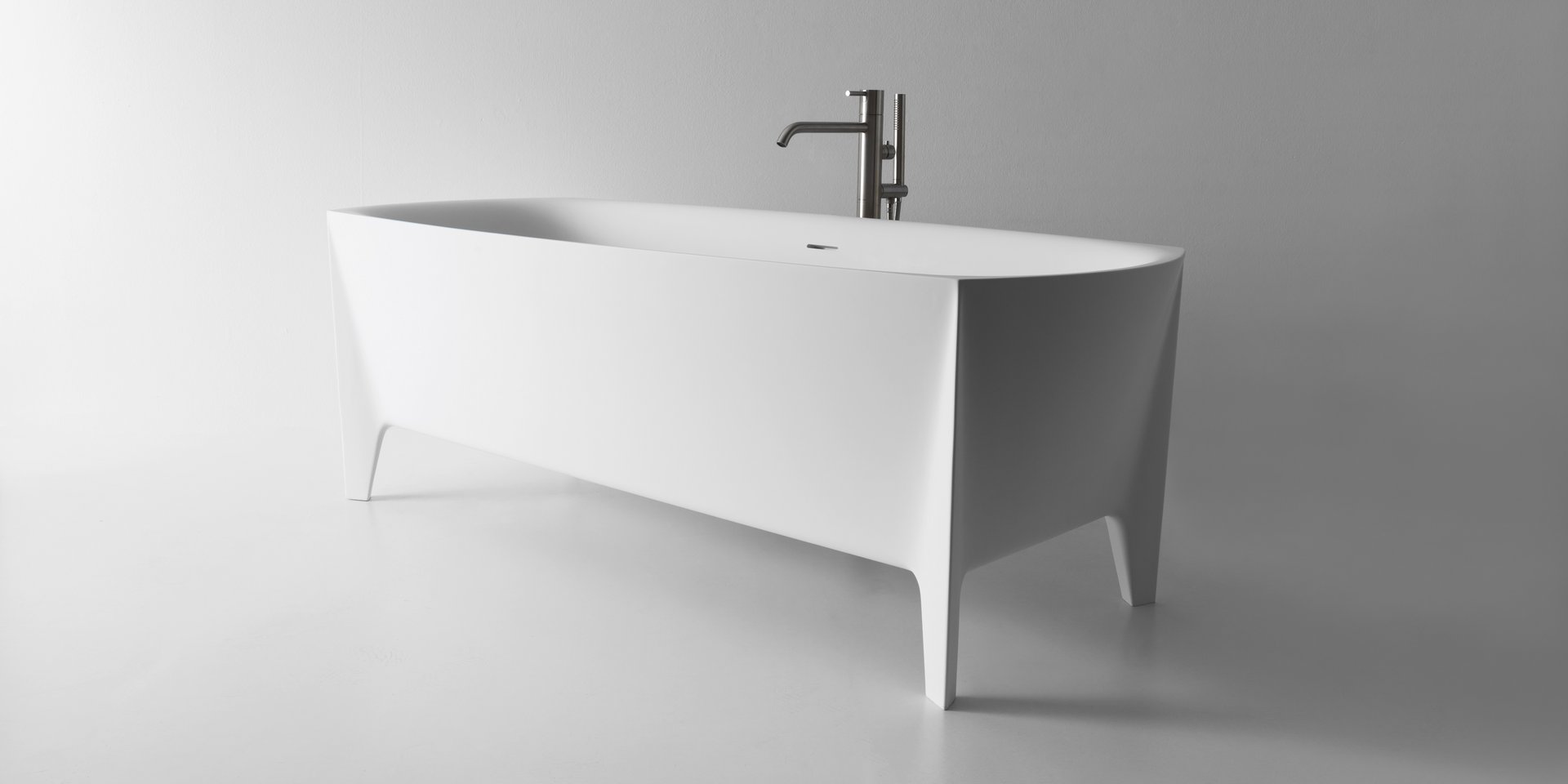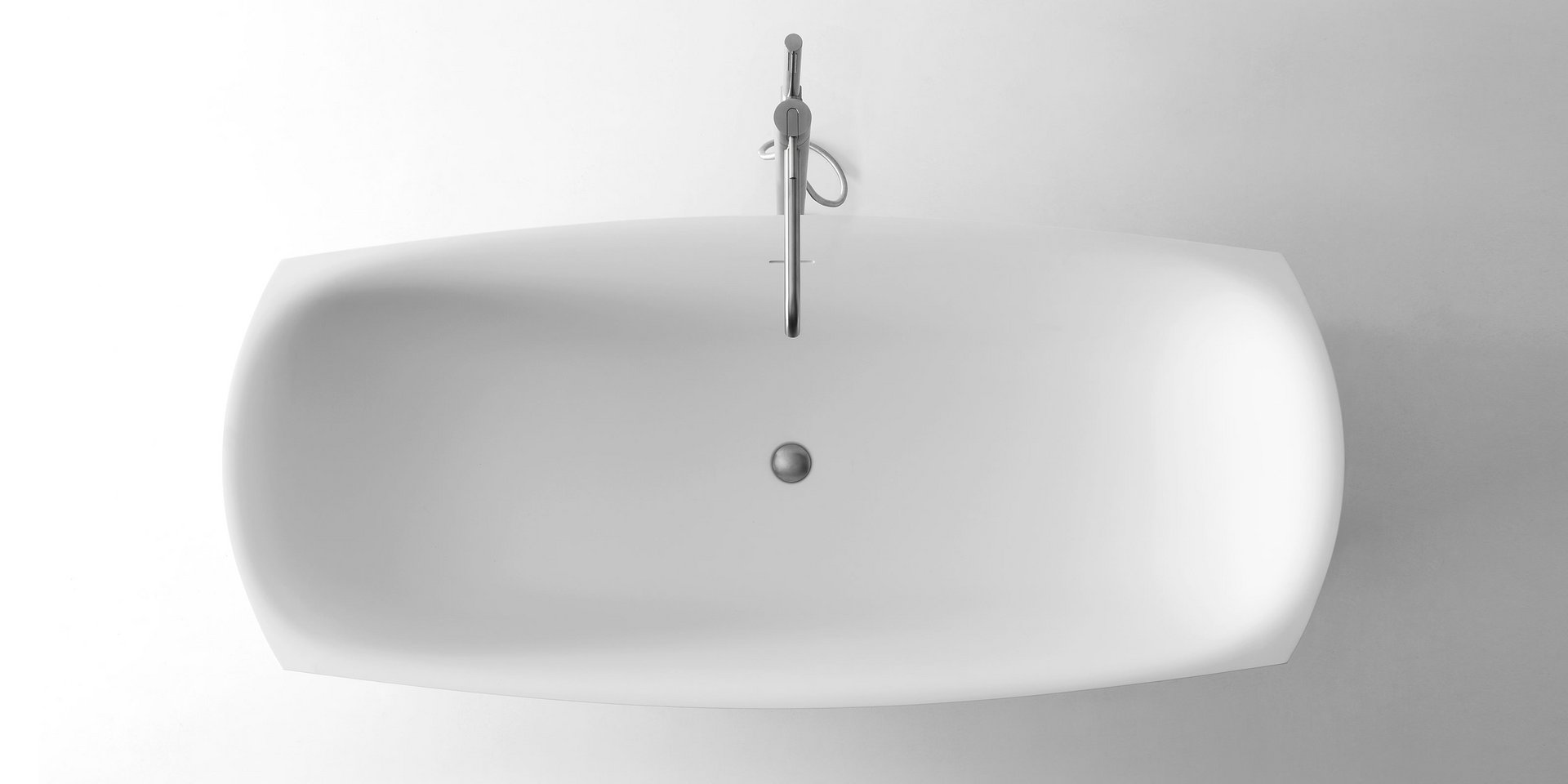 矩形生物基 Cristalplant 浴缸,带脚,配有排水和压力塞、虹吸管和软管。