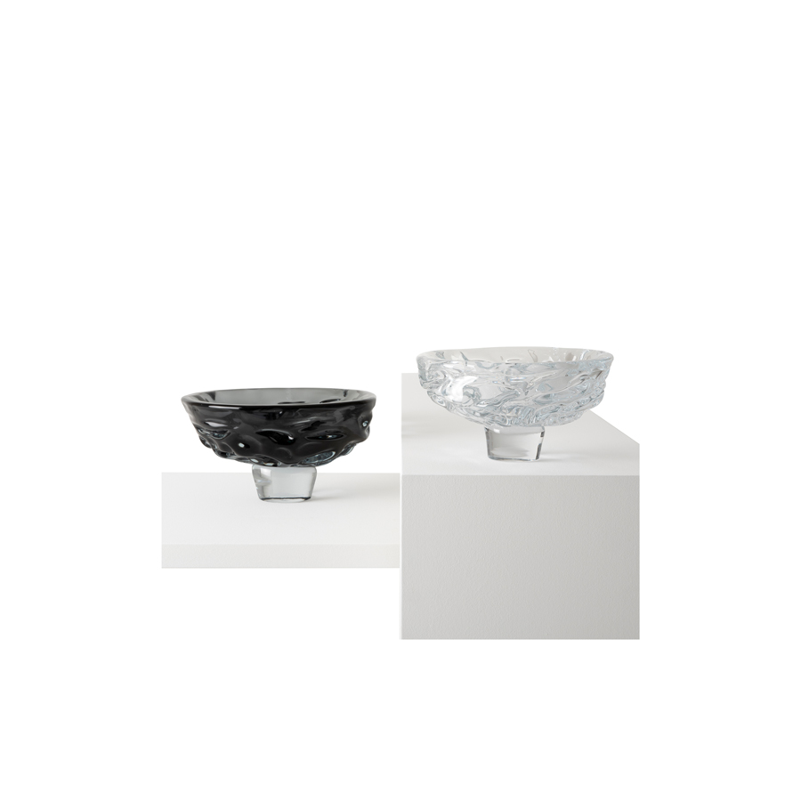 嘴吹和手工花瓶与有机形状。阿莫福有蓝灰色和水晶色变种可供选择。