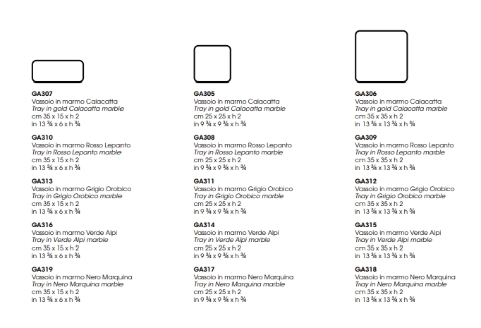 大理石托盘有两种形状:方形和矩形。通过雕刻大理石板获得,区域是一个非常简单的对象,但在同一时间肯定丰富。