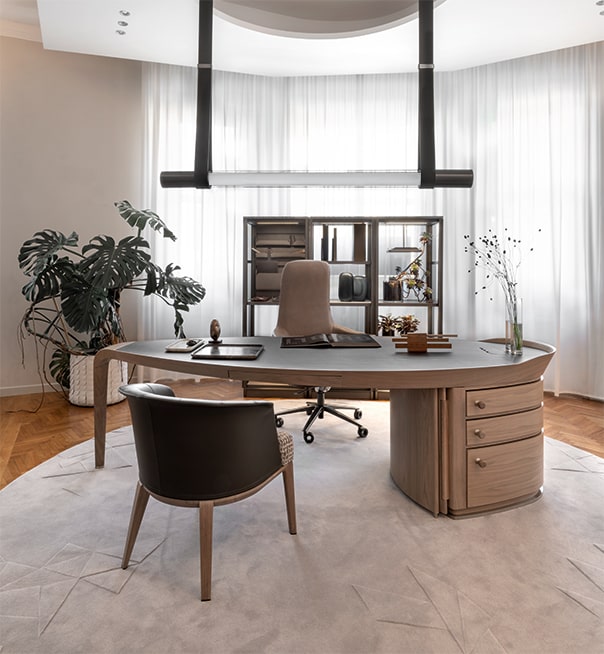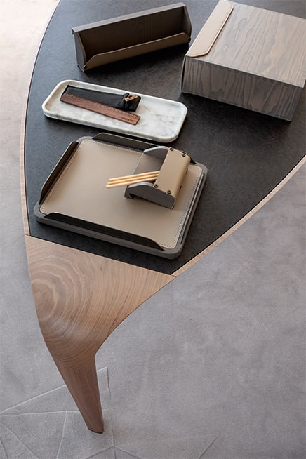 新西兰羊毛或竹丝中的单色地毯,采用手工制作,采用拖拉技术制成。凿子有一个三维图案,通过剃须在桩的渐进高度实现,这给地毯的体积。