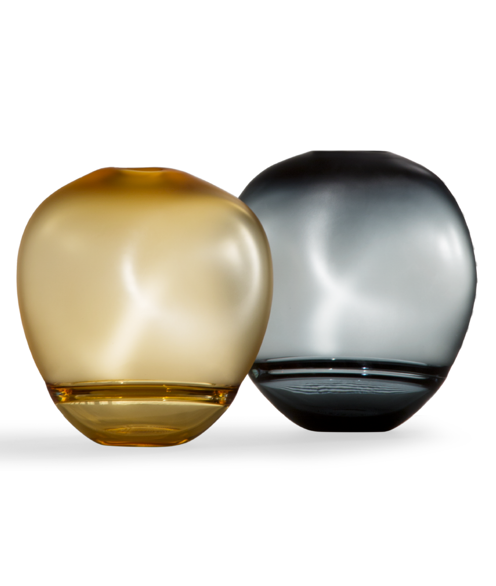 具有特定有机形状的嘴吹花瓶。该件是著名的内部环与热工作与膜技术,将缎面上部从下抛光部分划分。
