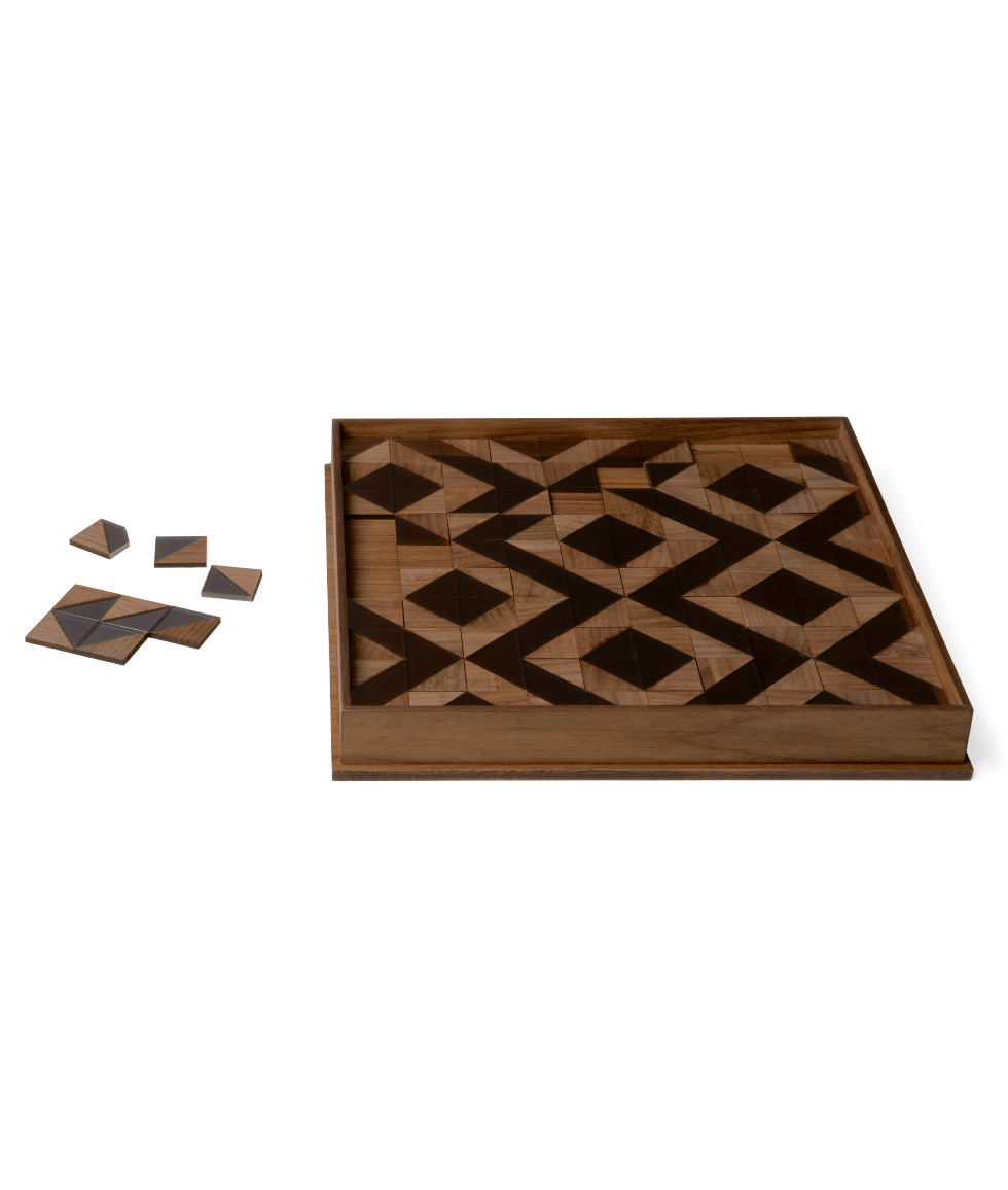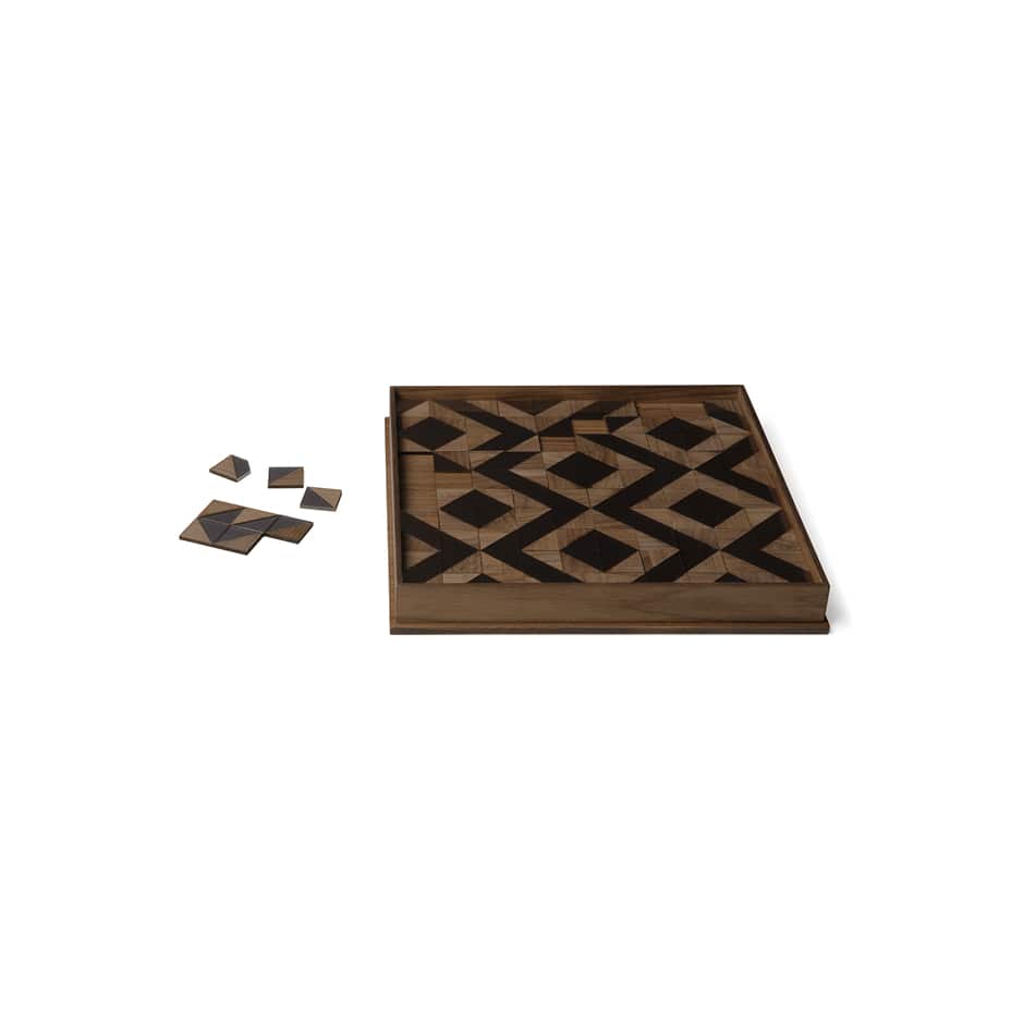 Diy 是一个由核桃木和甲基丙烯酸石组成的谜题,包含在一个珍贵的木箱中。马赛克拼图在卡纳莱托核桃和烟熏甲基丙烯酸
