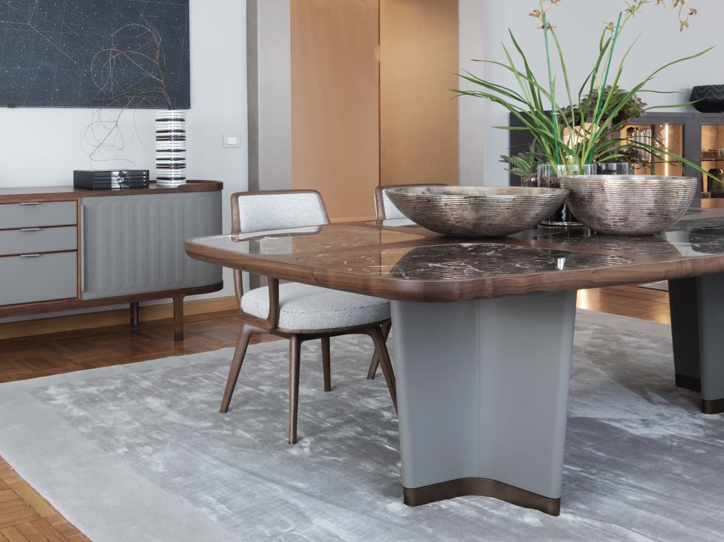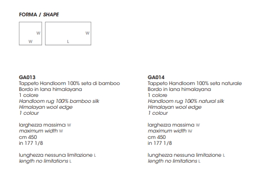 手工地毯用竹丝或天然丝绸手工编织,具有喜马拉雅羊毛边缘。边缘有一个闪亮的哑光纹理:丝绸和羊毛在光线下创造不同的效果,并突出单色对比的微妙细化。