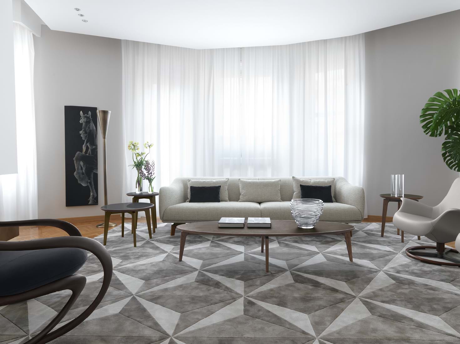 竹丝或天然丝绸中的地毯,采用优质的拉丝技术手工制作。手工雕刻工艺通过 3D 效果模式增强了设计。几何是坚固和沉重的,但也非常柔软和光滑的触摸。
