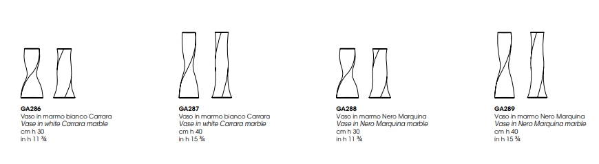 雕塑花瓶由卡拉拉和尼禄·马奎纳大理石的扭曲圆柱体组成。大理石花瓶,其曲折的形状是由围绕主轴的圆柱体扭曲创建的。卡拉拉和尼禄马奎纳大理石有两种尺寸可供选择。