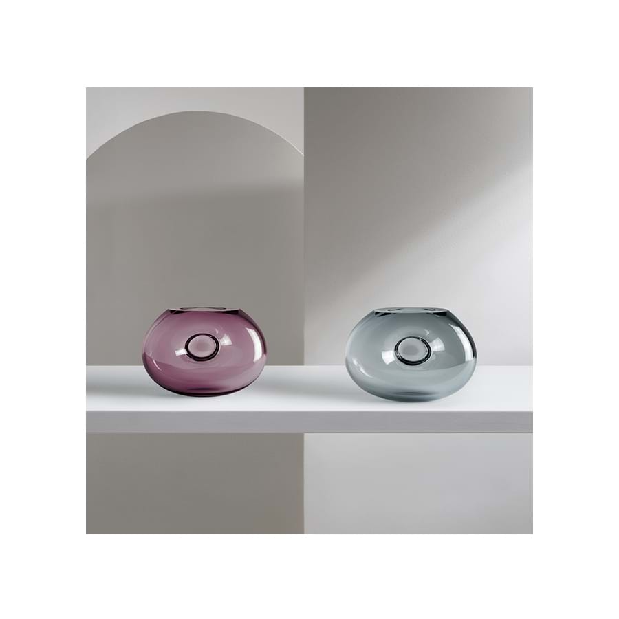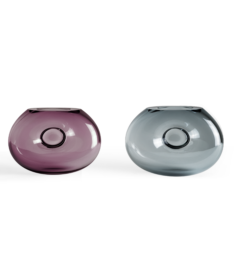 嘴吹和手工花瓶。在罗马的中心部分,两个表面粘在一起,使气泡仍然被困,其形状每次不同。