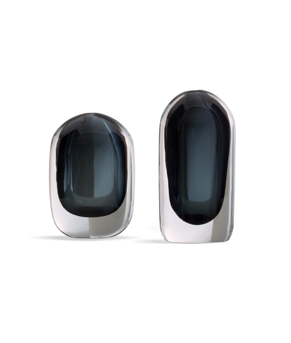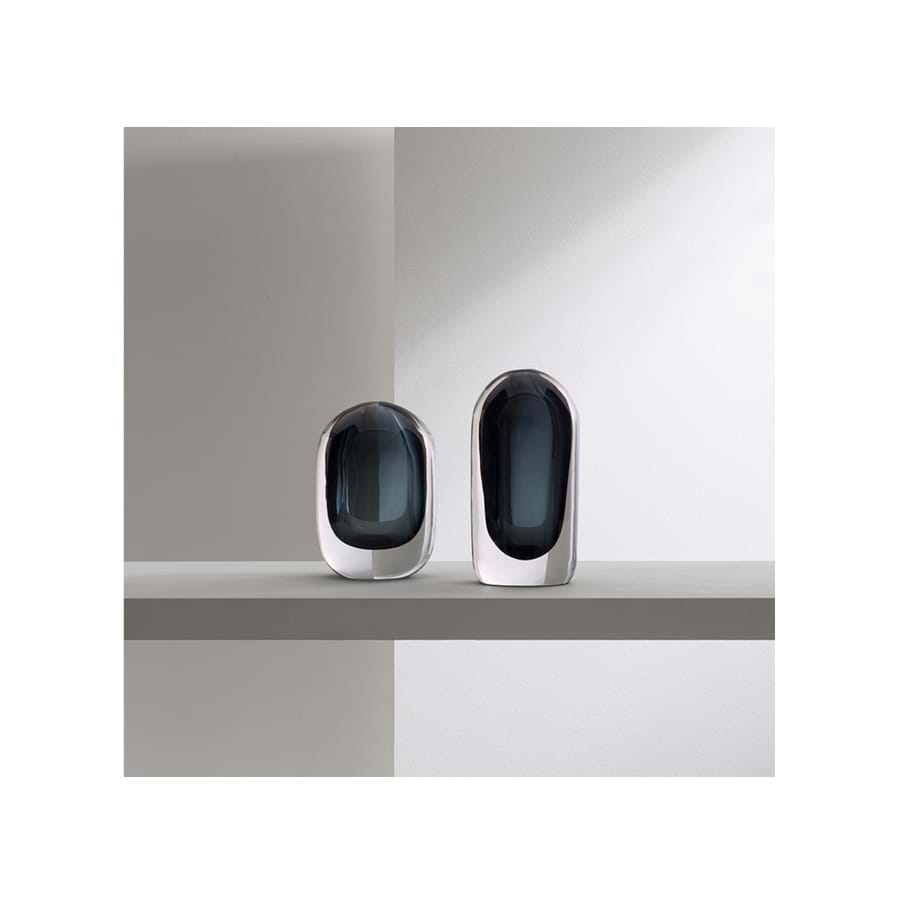 嘴吹花瓶与独特的工作固体玻璃与凹陷的彩色核和水晶外观。
