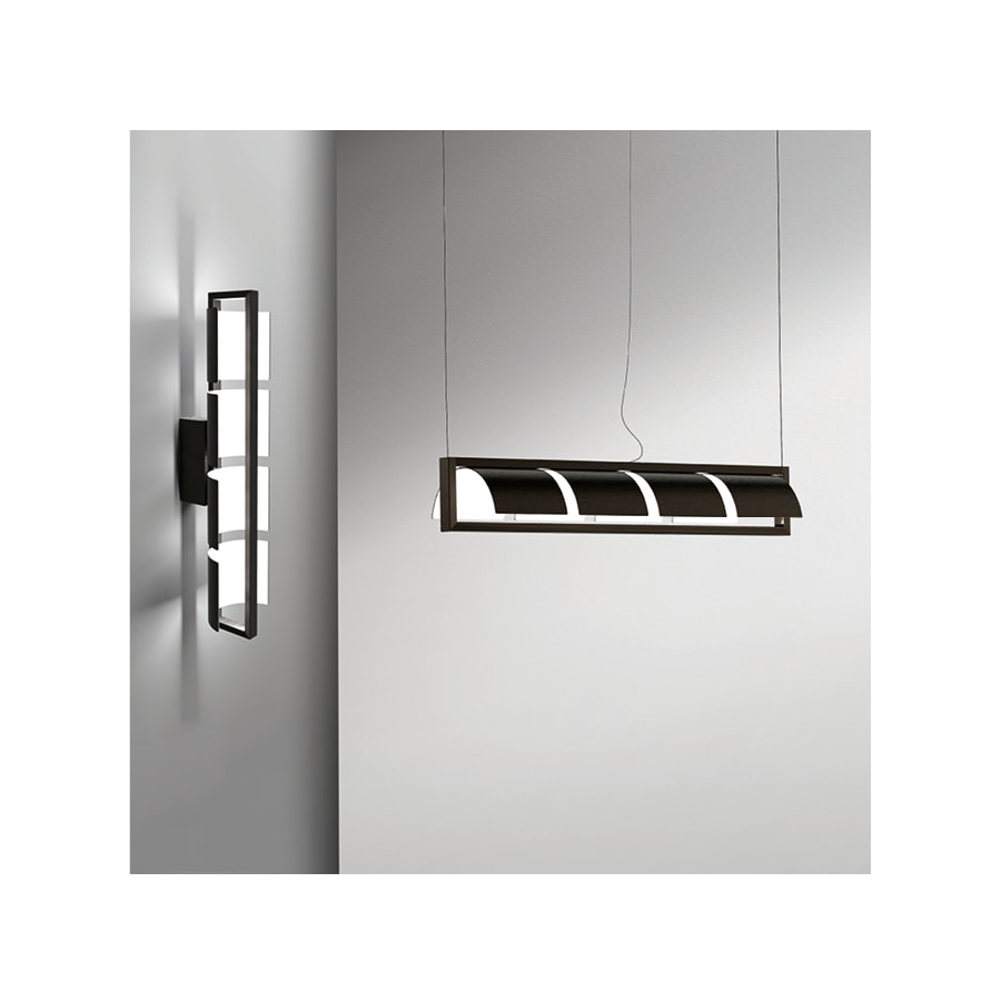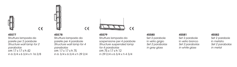 墙和悬挂灯,结构在金属或缎面玻璃中抛光金属和抛物线元素。盾构是一盏带间接光的灯,由于有两个 LED 灯点,具有双点火。照明集成到金属结构中。