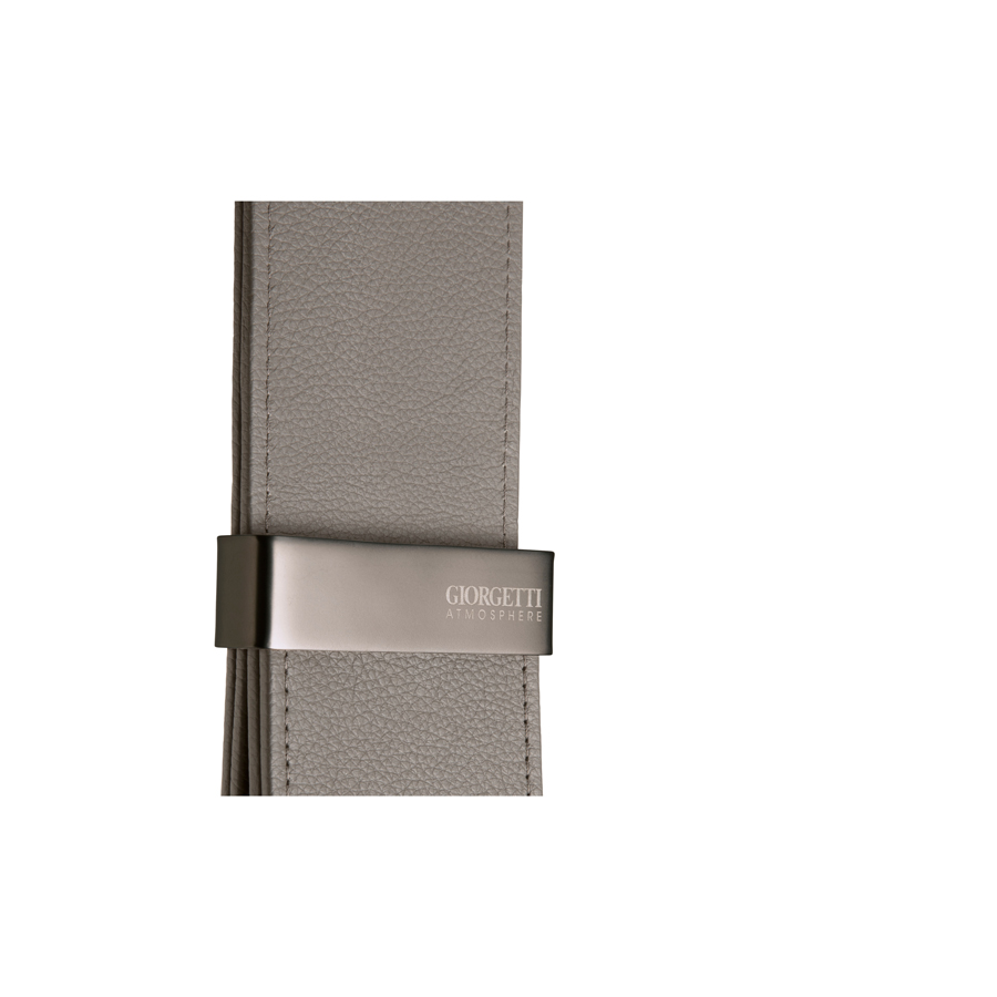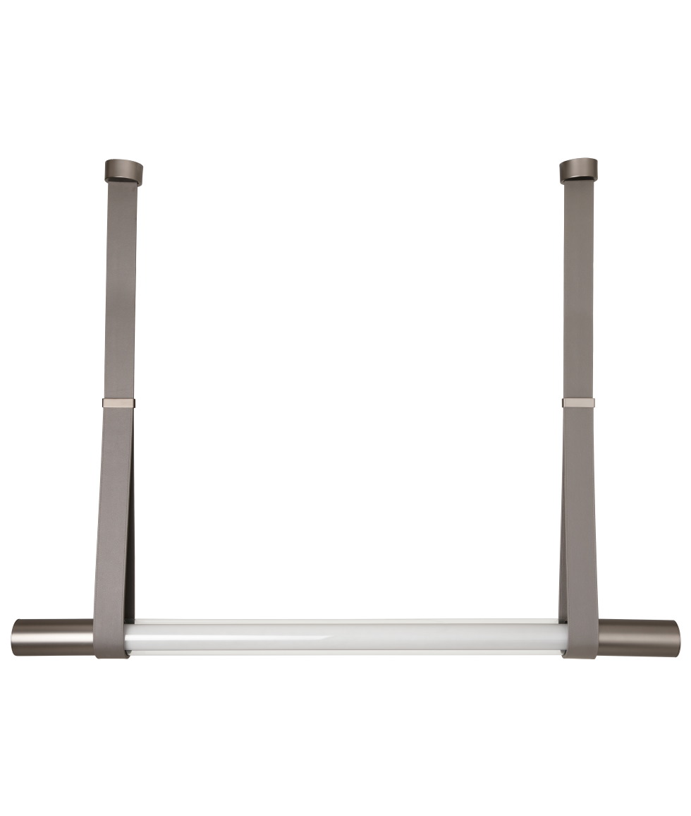 悬挂灯的结构由管状扩散器组成,由三种不同颜色的皮带悬挂:粉末、无烟煤和图普。内部,LED 系统允许光线甚至超过青铜反光玻璃棒的整个表面。